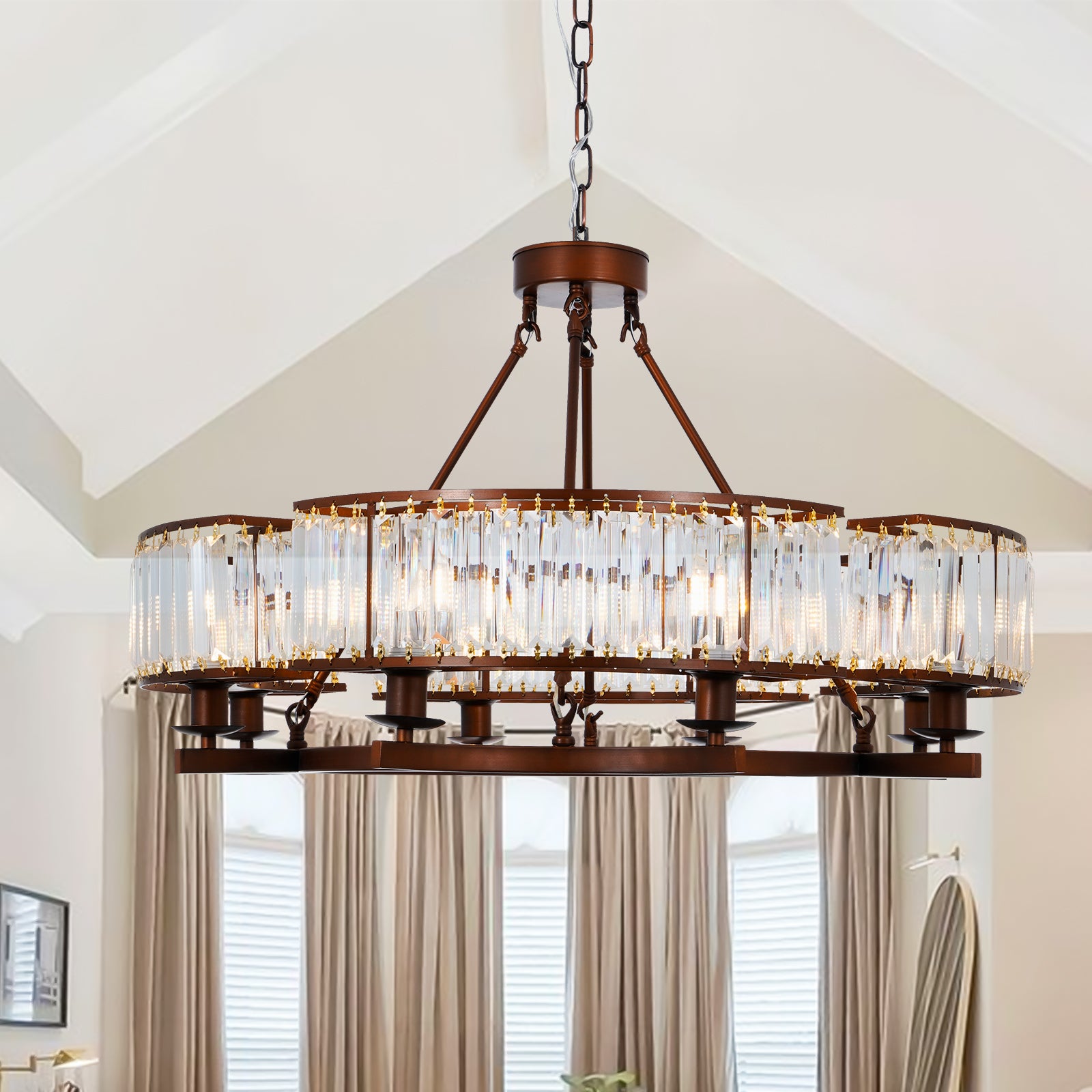 The Vintage Brown Adjustable Crystal Chandelier combines timeless elegance with a versatile design. Featuring high-quality crystal elements and a rich brown finish, this chandelier adds a touch of vintage charm to any space.