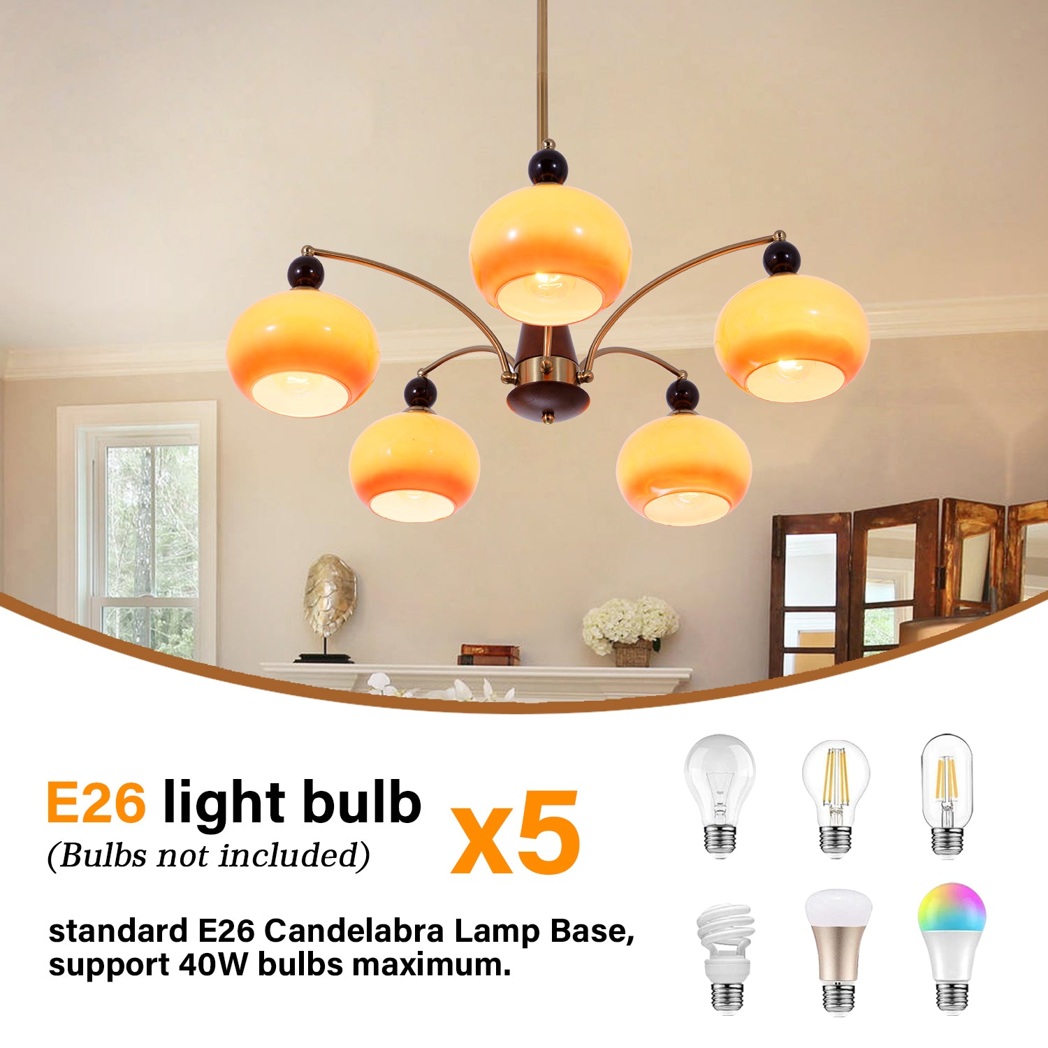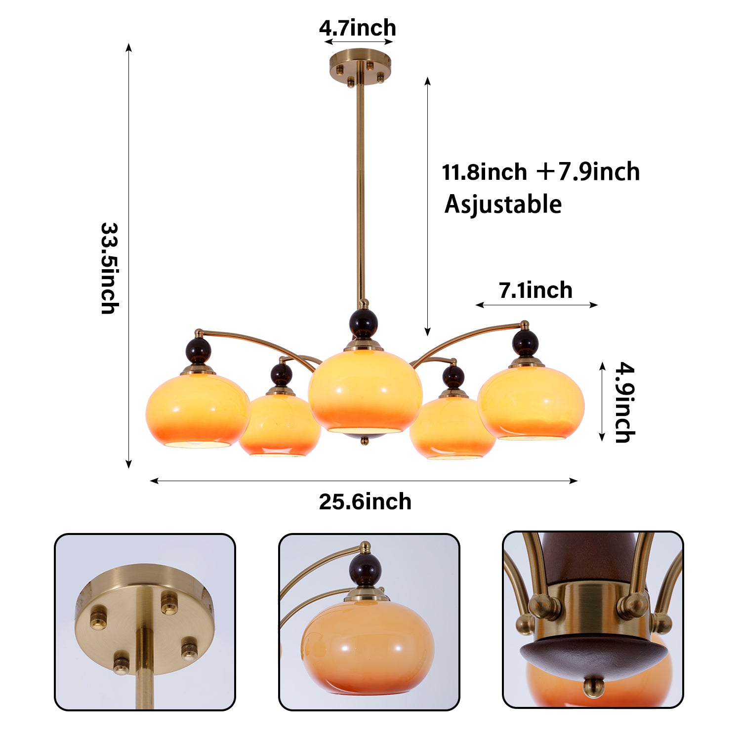 Modern Simple Style Enclosed Light Chandelier with 5 Lights, Downward Direction on Suspension Rod and Adjustable Hanging Rod, 110V-120V DS-SQ35