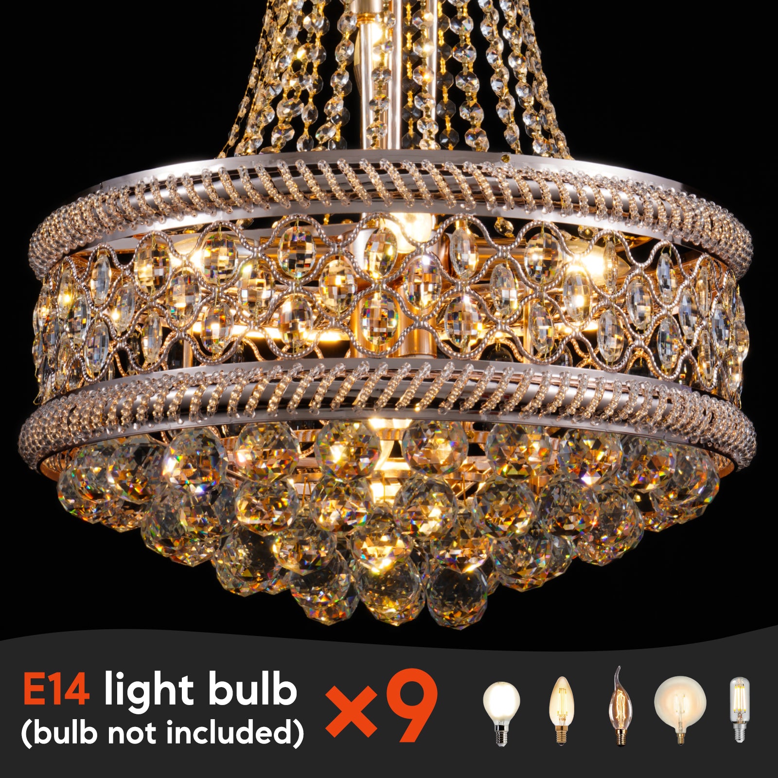 Requires 9 x E14 base bulbs, Max 60W (bulbs not included). Voltage: 110V. Compatible with incandescent, fluorescent, LED, and smart bulbs. Fully dimmable with dimmable bulbs and a compatible dimmer switch.