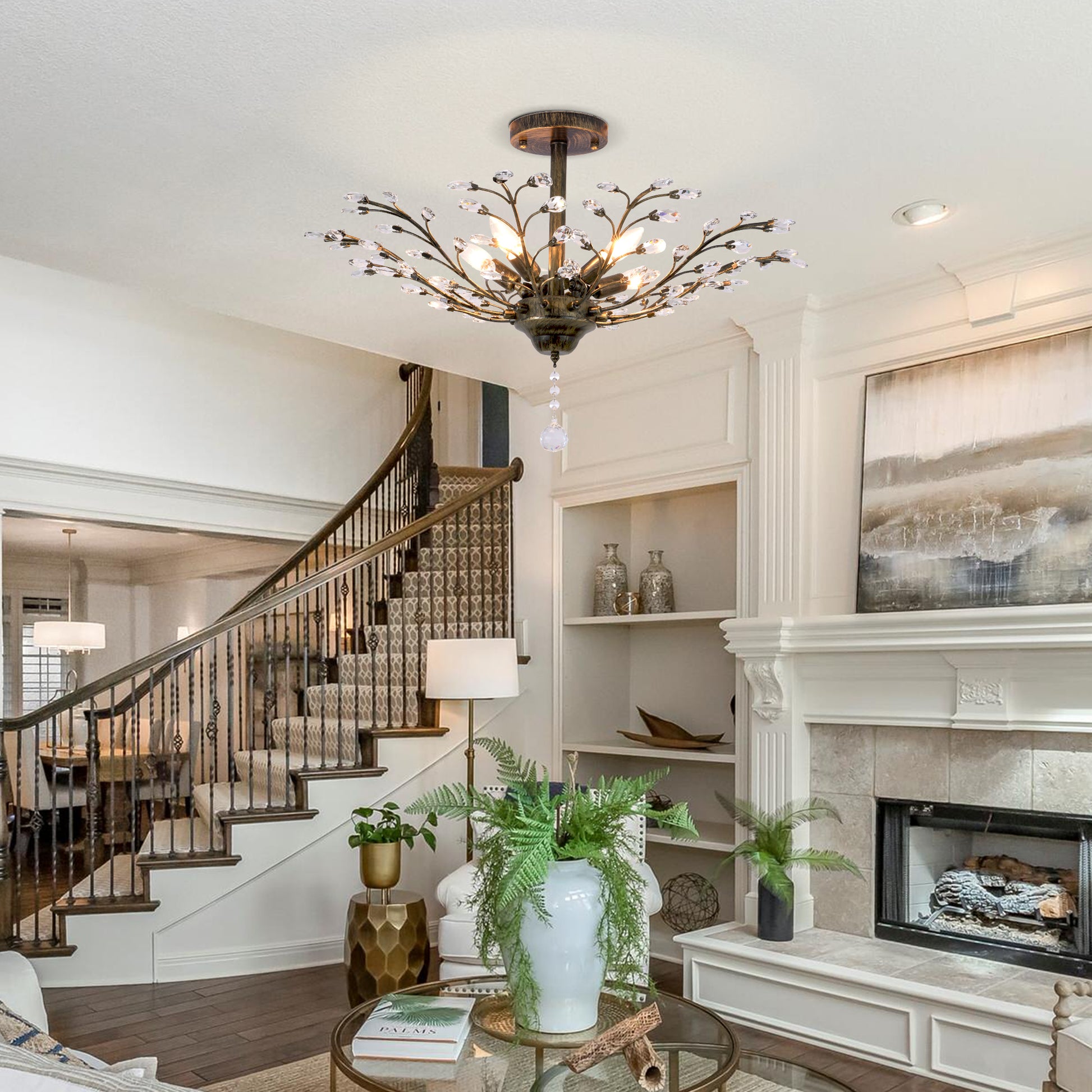 - Easy To Install&Clean:For This Flush Mount Crystal Ceiling Light You Just Need Few Minutes To Assemble The And Hang On Into Your Ceiling,And It's Easy To Clean And Maintain.If It's Dirty,Just Wipe It With A Clean Cloth.