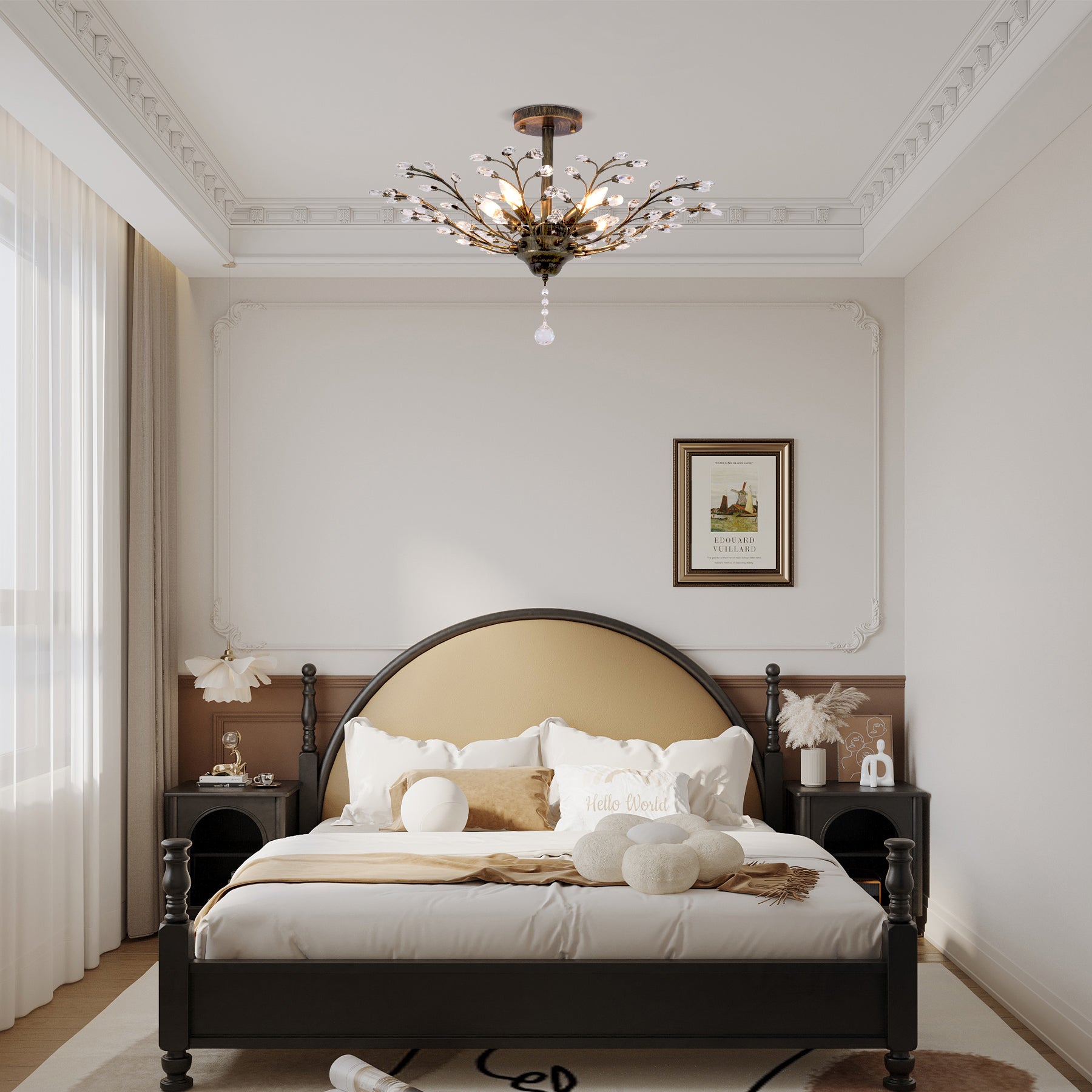 Vintage Large Crystal Branches Chandeliers,Close to Ceiling Light Flush Mount Fixture Black Flower Shape for Bedroom Entryway Living Room-Black 5 Heads Ceiling DS-SY59