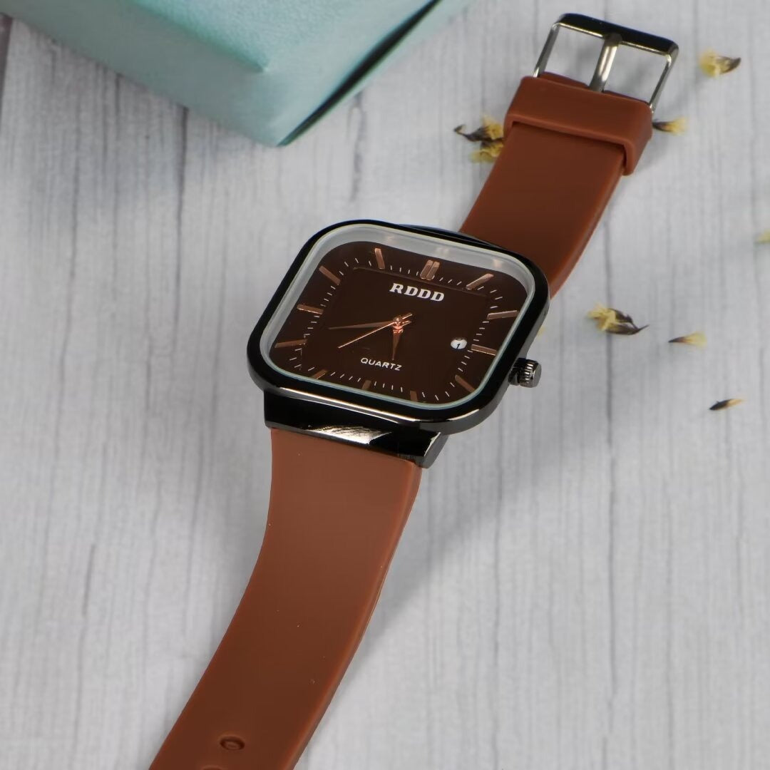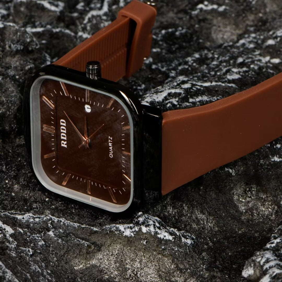 Fashionable neutral silicone strap, square quartz watch, minimalist zong color men's and women's watches