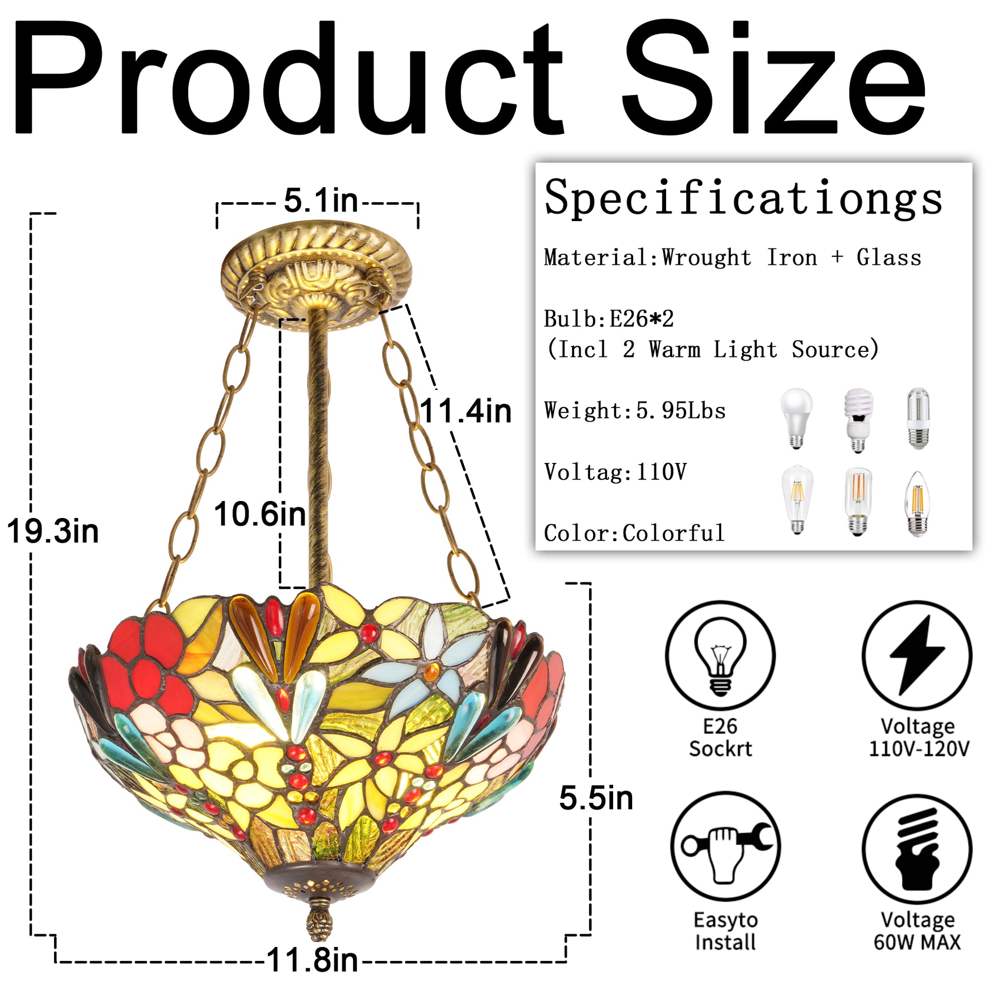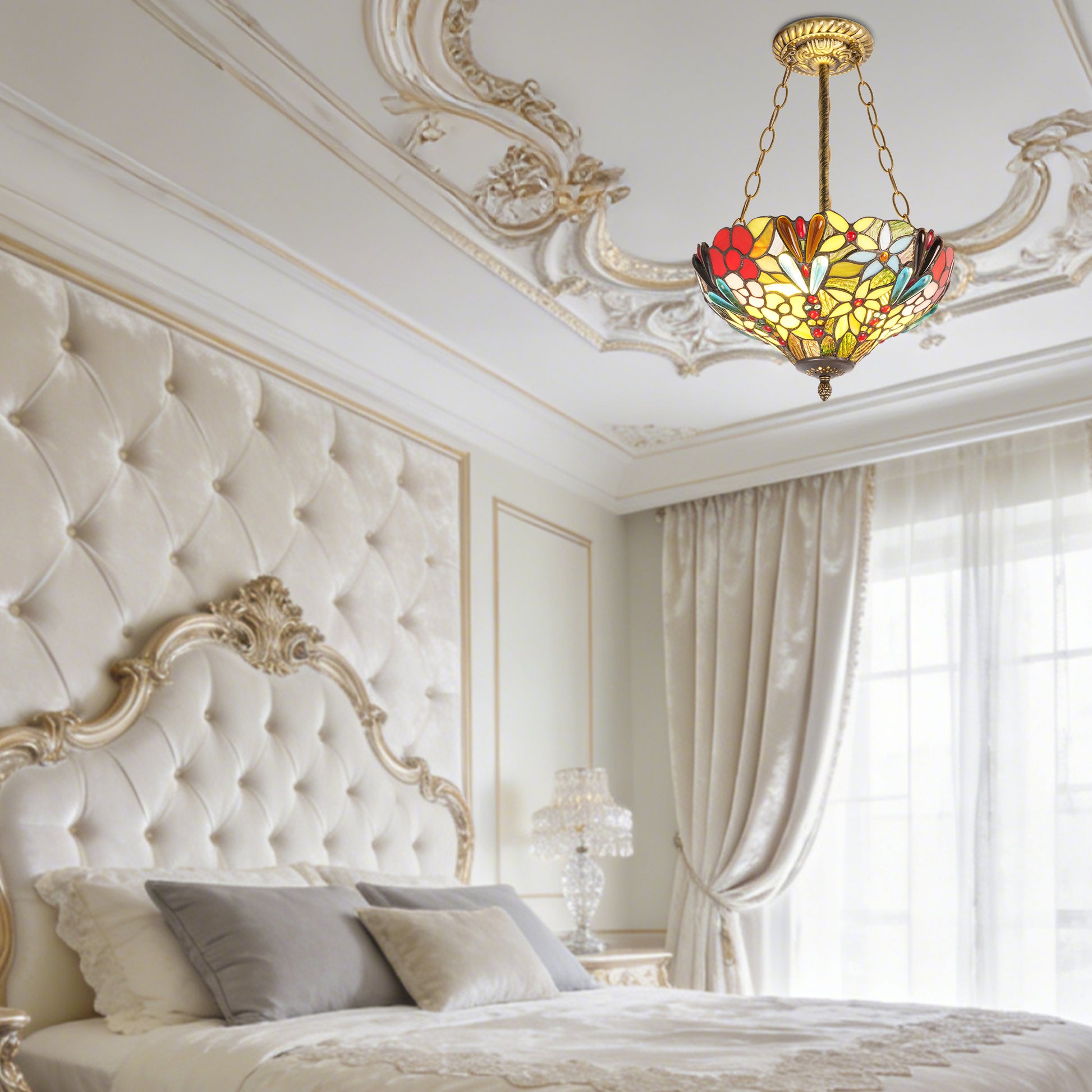 Transform any room into a space of timeless beauty and warm illumination with our Tiffany Style Floral Stained Glass Semi-Flush Mount Chandelier. Whether you’re looking to make a bold statement in your living room or add a touch of vintage charm to your bedroom, this fixture is sure to captivate and delight.