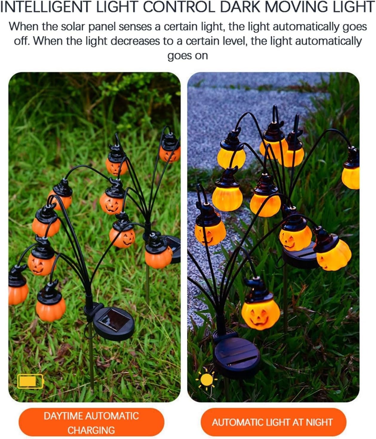 - Eco-Friendly Solar Power Lights: These Halloween pumpkin stake lights are powered by solar energy, making them an energy-efficient and environmentally-friendly addition to your festive decorations. Simply place them in an area with direct sunlight, it will charge during daytime and light up at night, it can lasting for 8-10 hours when fully charged.