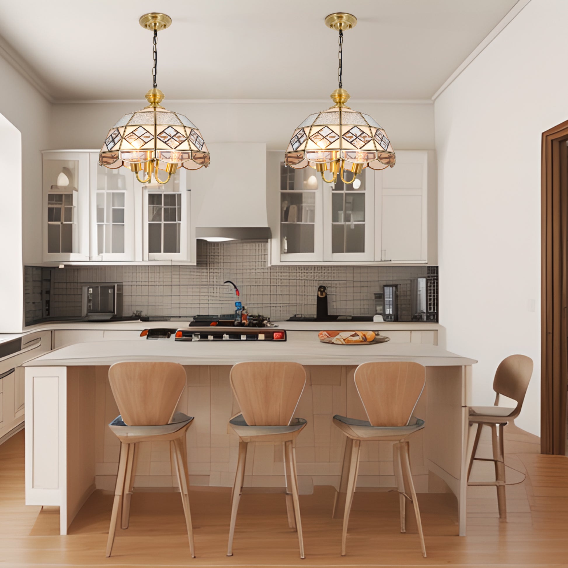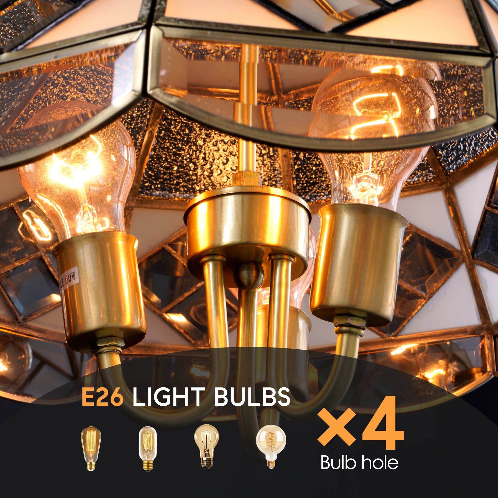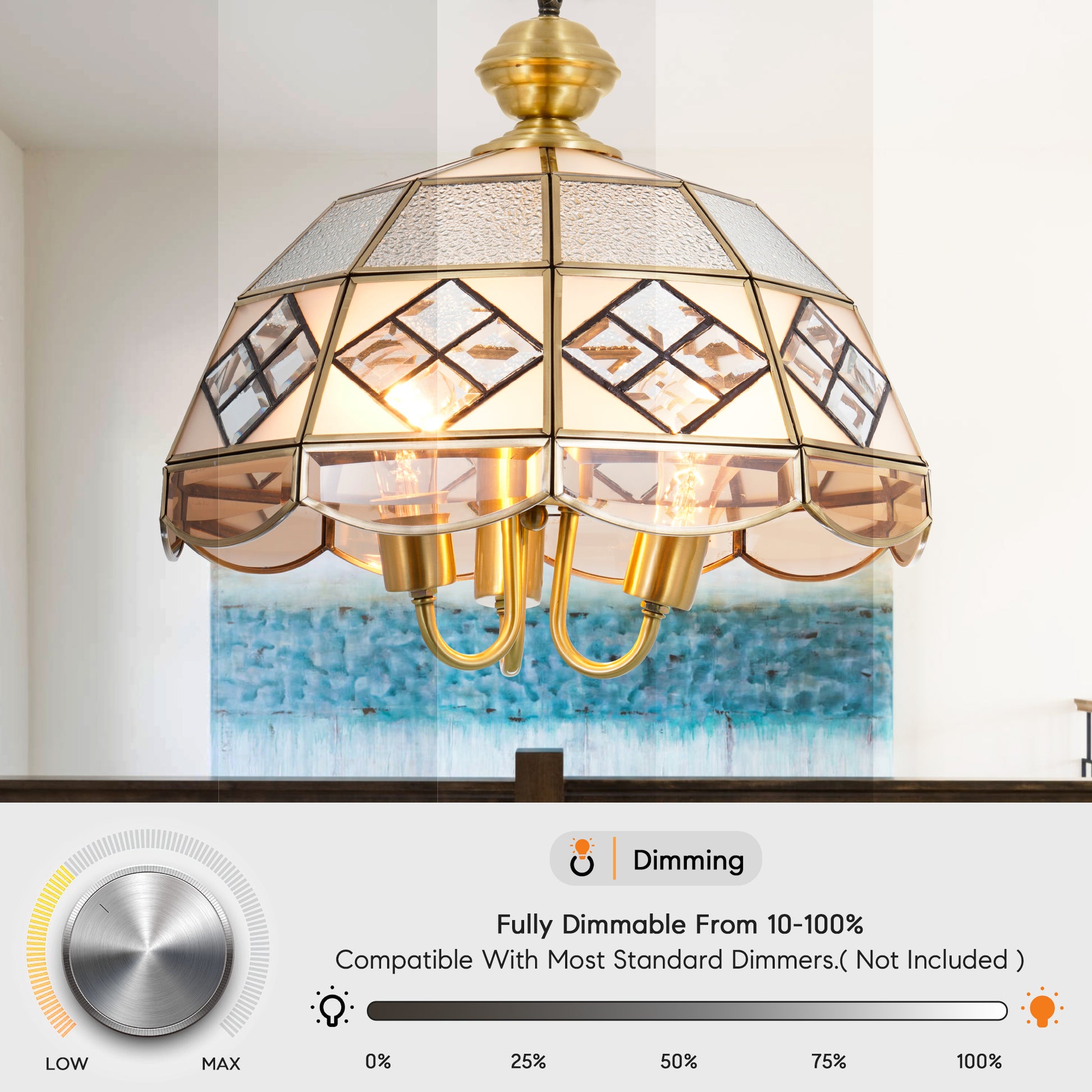 Warm Illumination: Enjoy the warm and inviting glow emitted by the four light bulbs nestled within the hand-cut Tiffany handmade drum shade. Its minimalist half-dome shape provides a stylish and functional lighting solution, ideal for kitchens, dining areas, or living rooms.