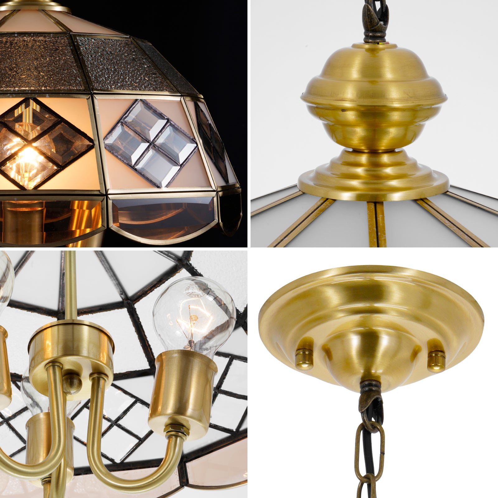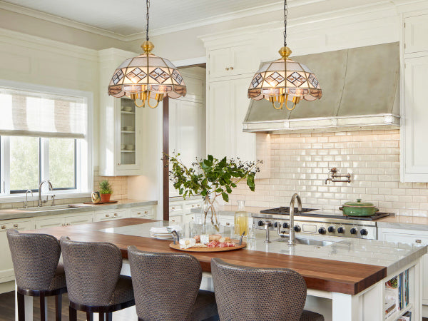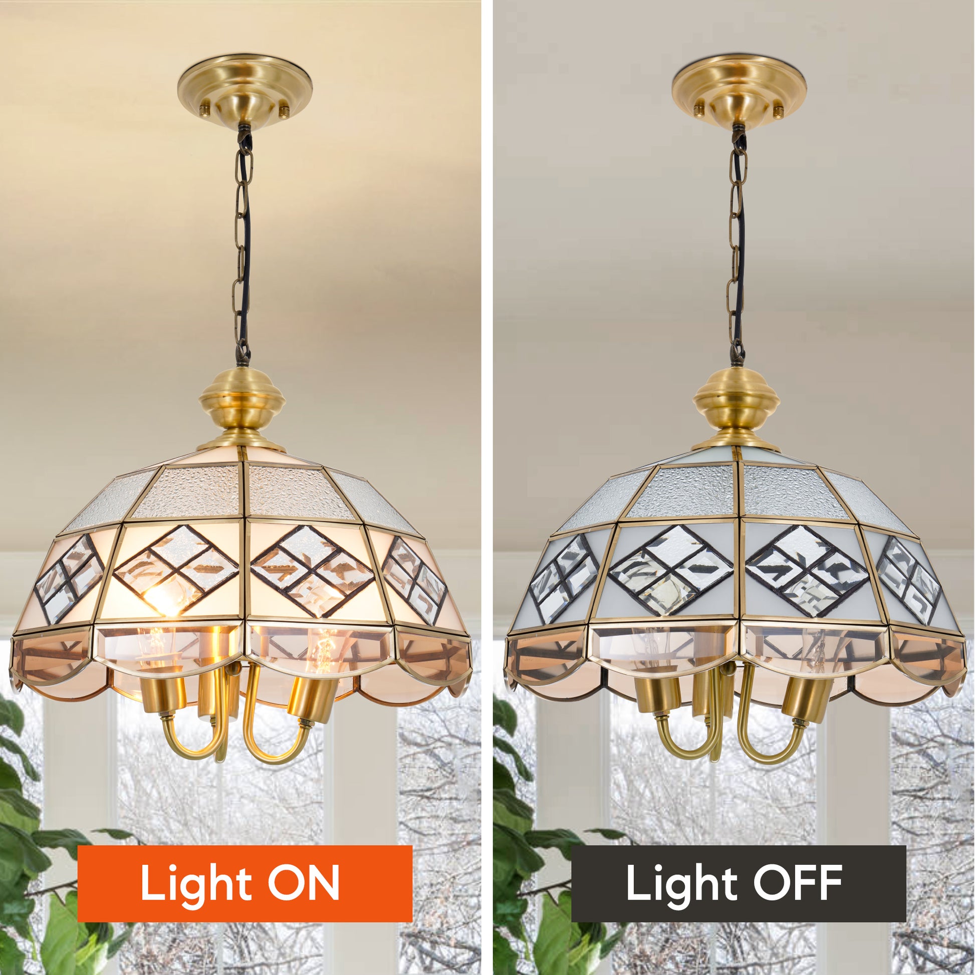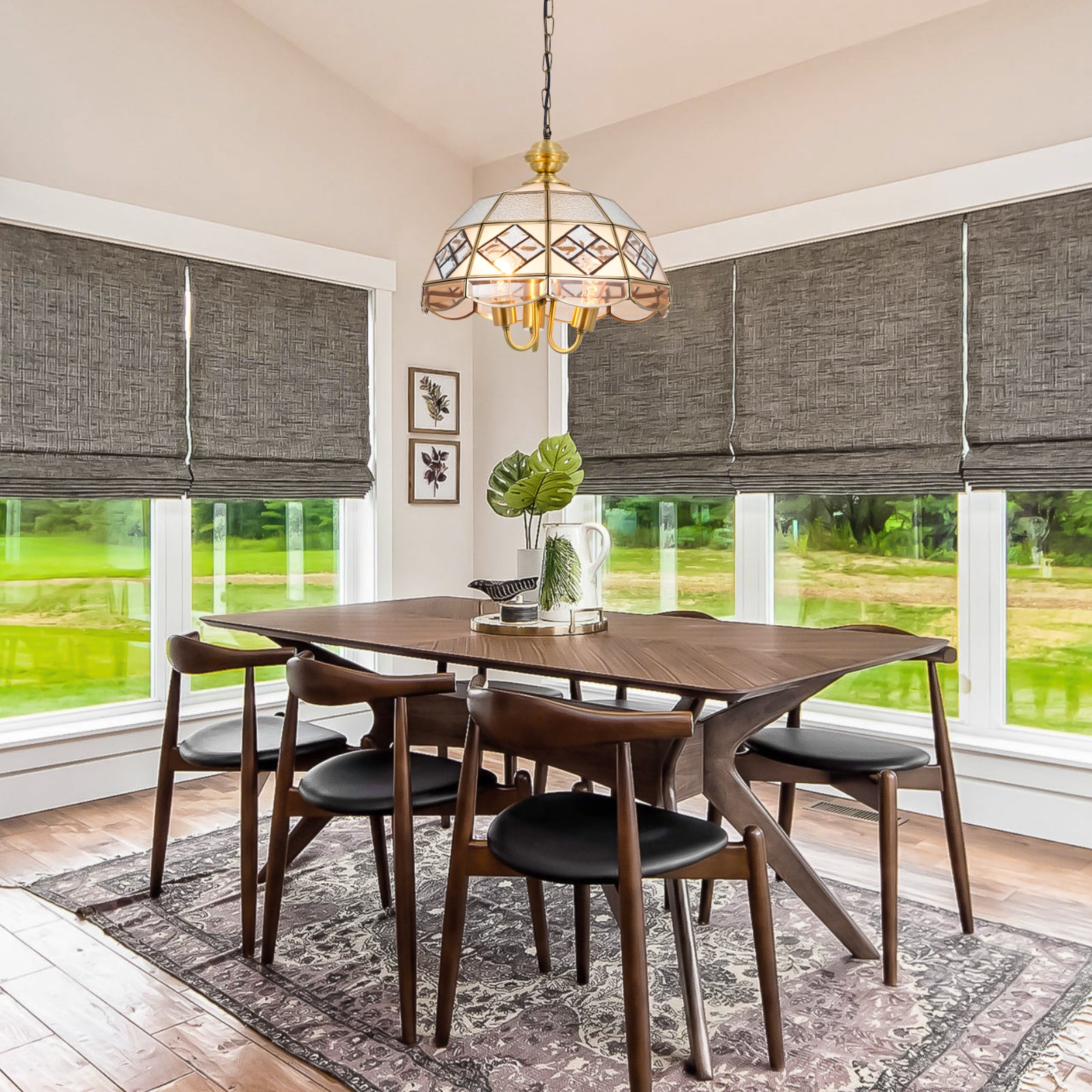 Warm Illumination: Enjoy the warm and inviting glow emitted by the four light bulbs nestled within the hand-cut Tiffany handmade drum shade. Its minimalist half-dome shape provides a stylish and functional lighting solution, ideal for kitchens, dining areas, or living rooms.