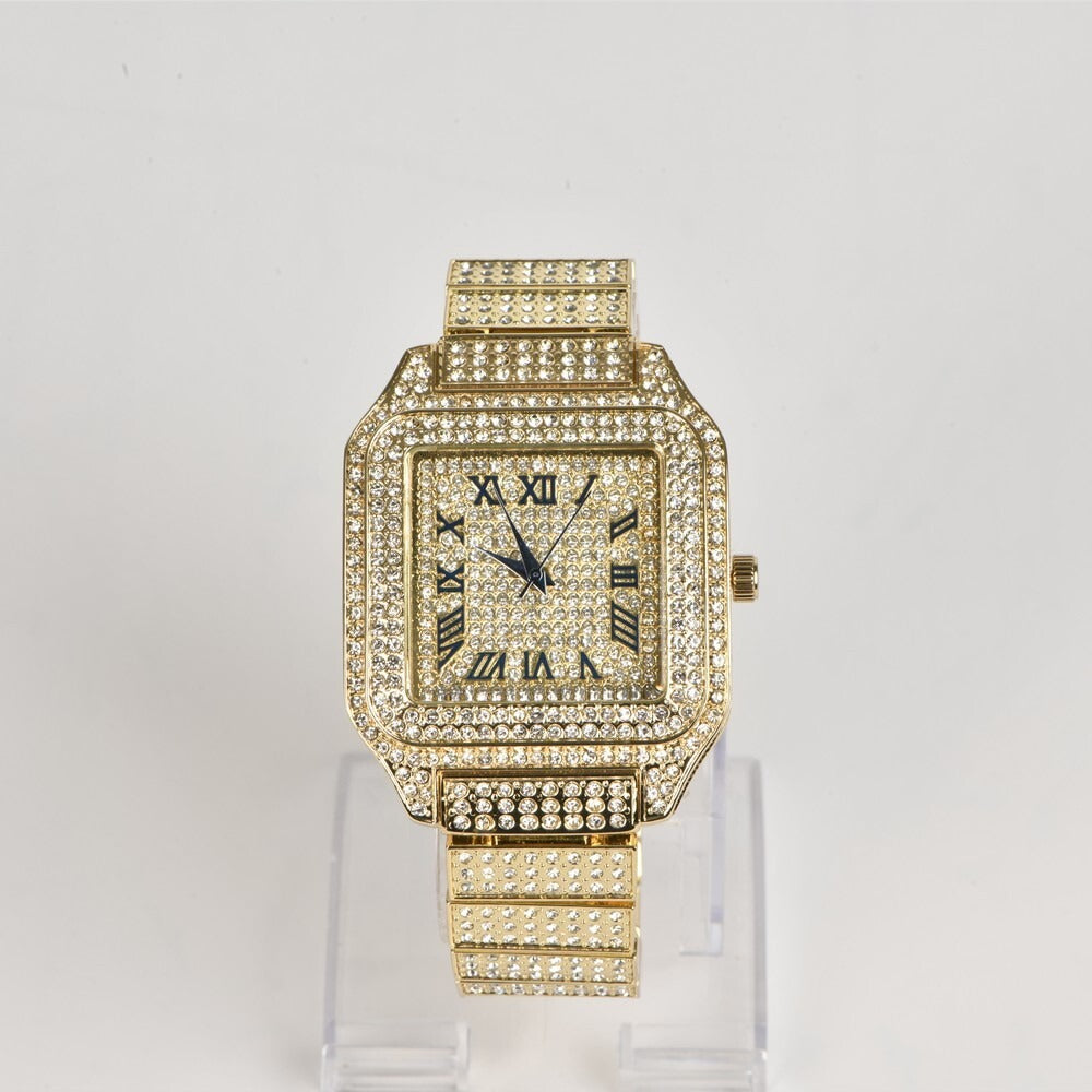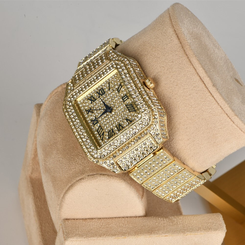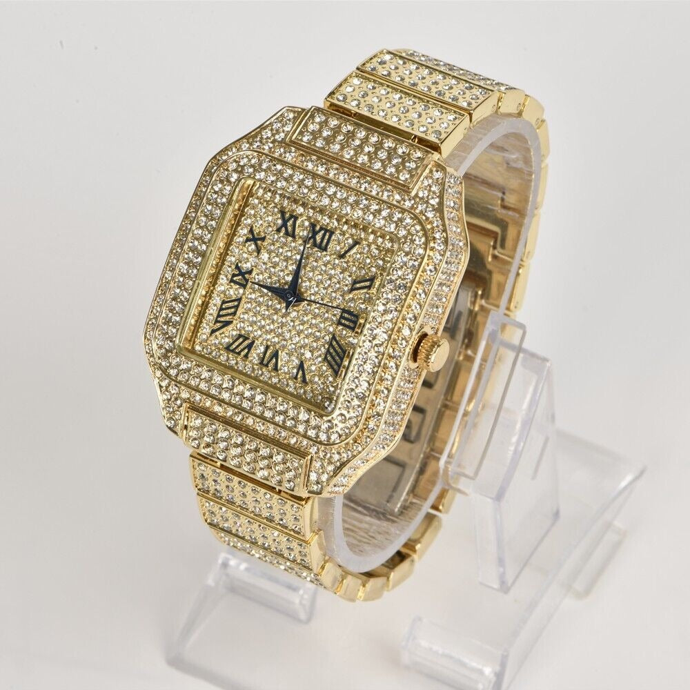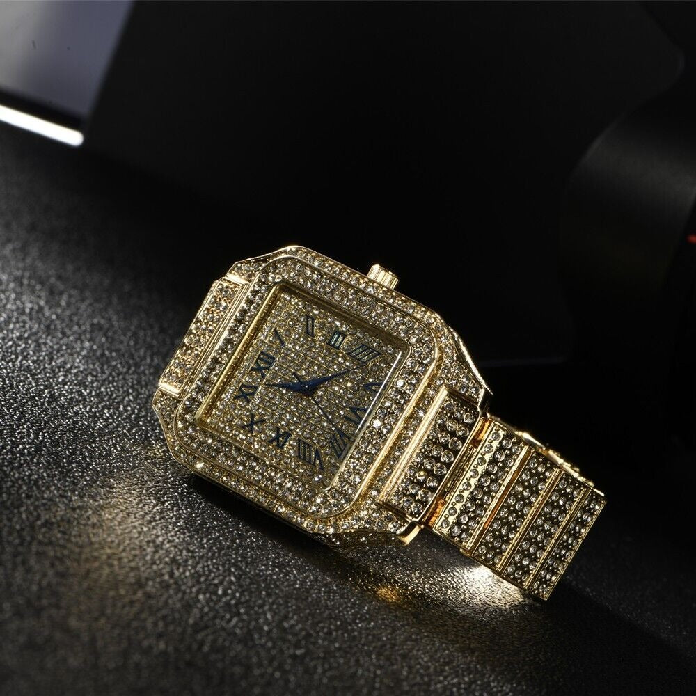 Luxury Classic Stainless Steel Crystal Quartz Analog Rectangle Dial Wrist Watch
