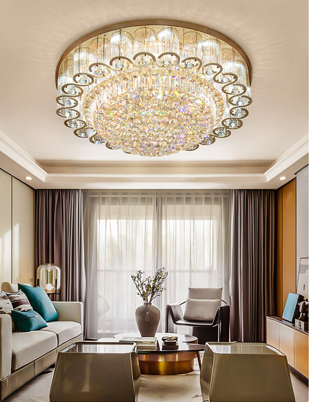 Luxury Modern K9 Crystal Chandelier Flush Mount LED Ceiling Light Fixture Gorgeous Pendant Lamp for Living Room Bar Shop (Dia 23.6") DS-TT29