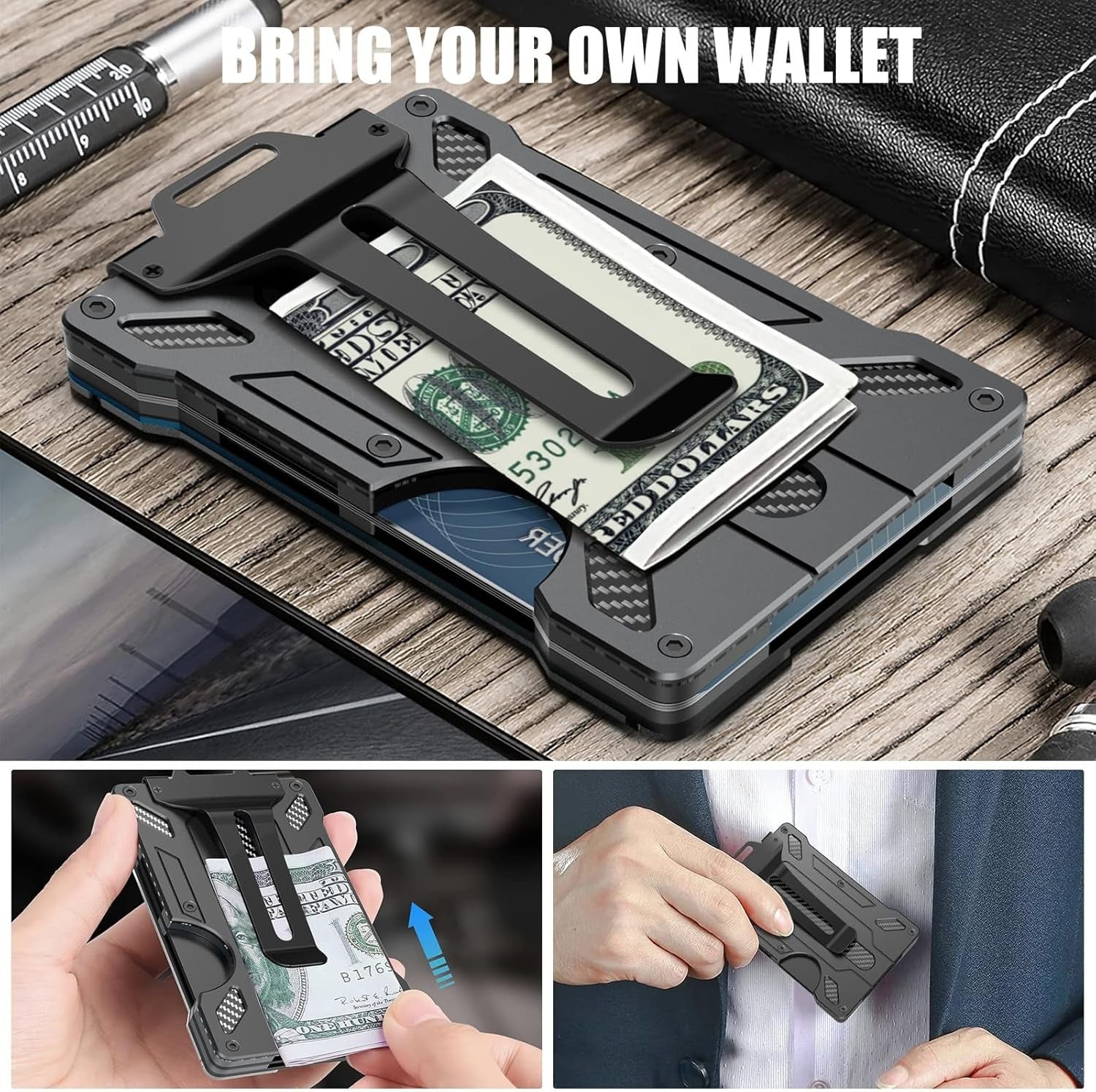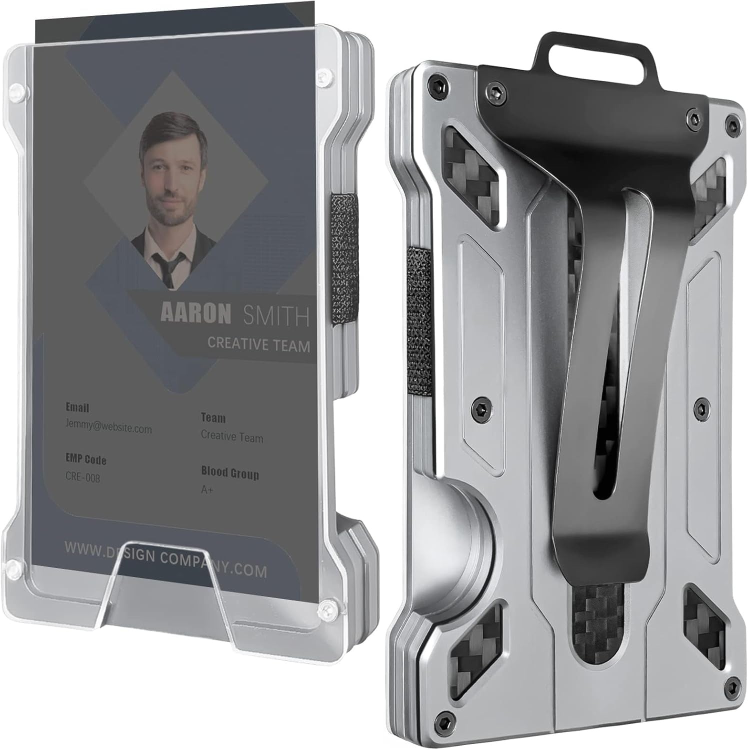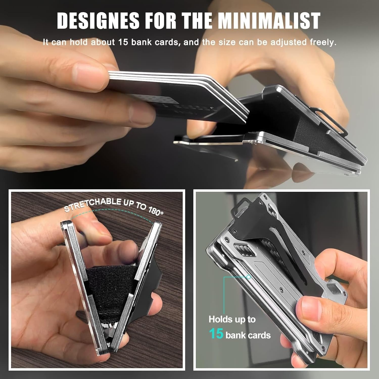 Enough Space‘: The flexible elastic webbing greatly increases the capacity of the card. It fits the card holder and can hold 1 15 cards without stretching. The metal front pocket wallet is perfect for carrying business cards, credit and debit cards, etc. The external notch allows you to easily push out the card. There is a stainless steel wallet on the outside of the wallet. Just fold your bills and slide them under the wallet until you need .