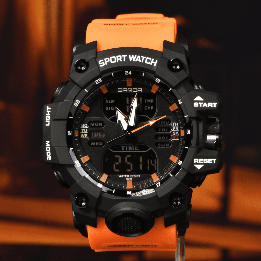 Men's 50m Waterproof Military Quartz Watch - LED Digital Clock TH-51