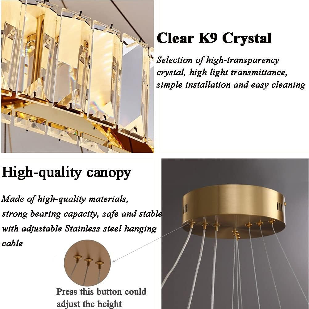 - 【K9 Crystal】This gold circular chandelier uses high-quality stainless steel canopy can resist and deformation, which has a good load-bearing capacity, the sparking crystal prisms create glamour and brilliant illumination, this crystal chandelier suitable for Living Room, Dining Room, Proch, Hotel, Staircase, Island, Foyer, Bedroom, Hallway, Office.