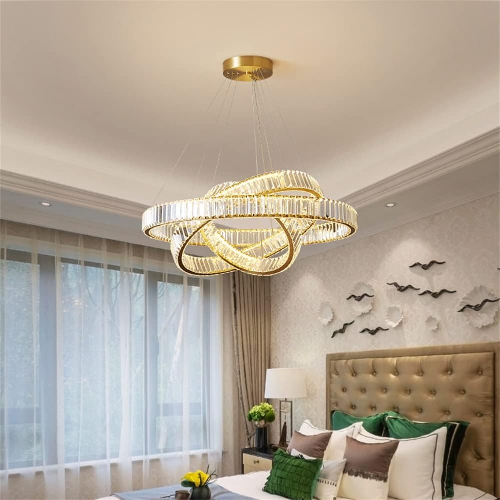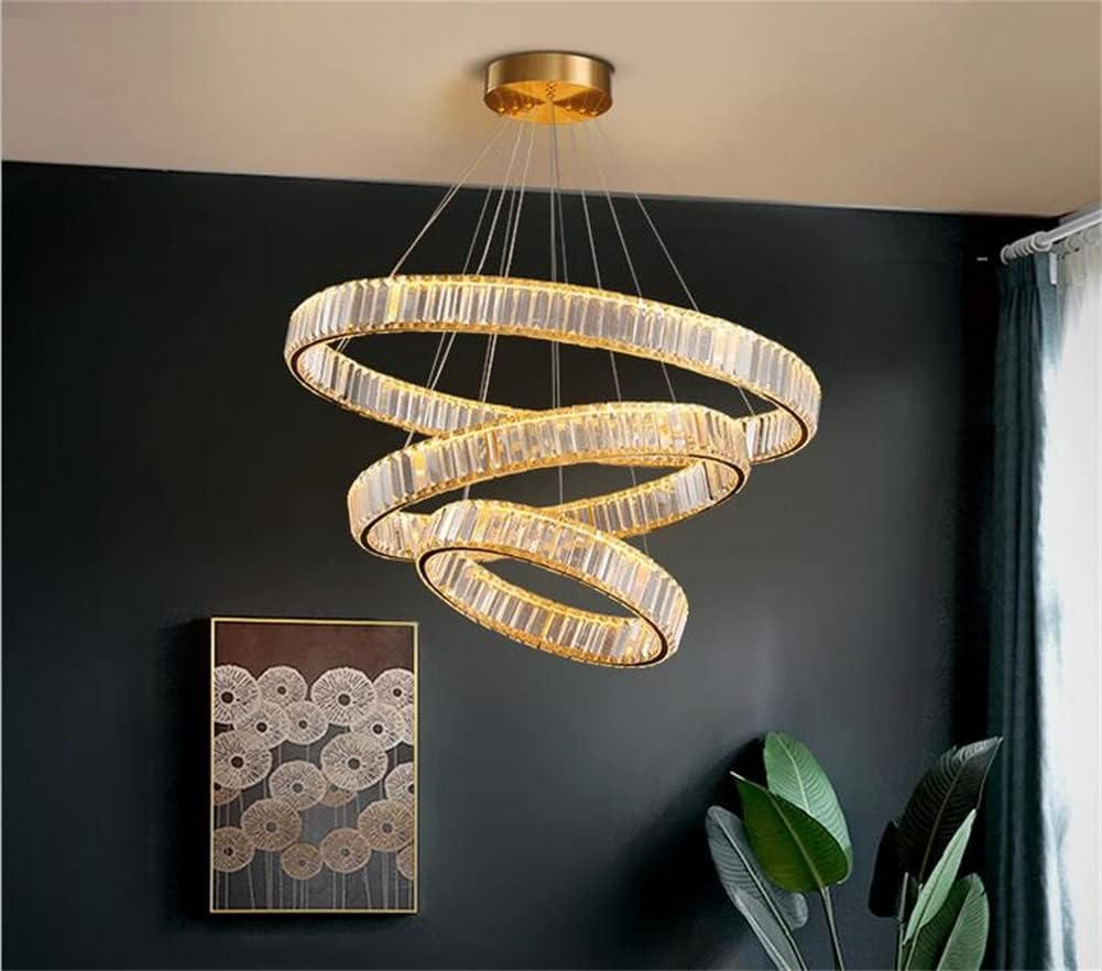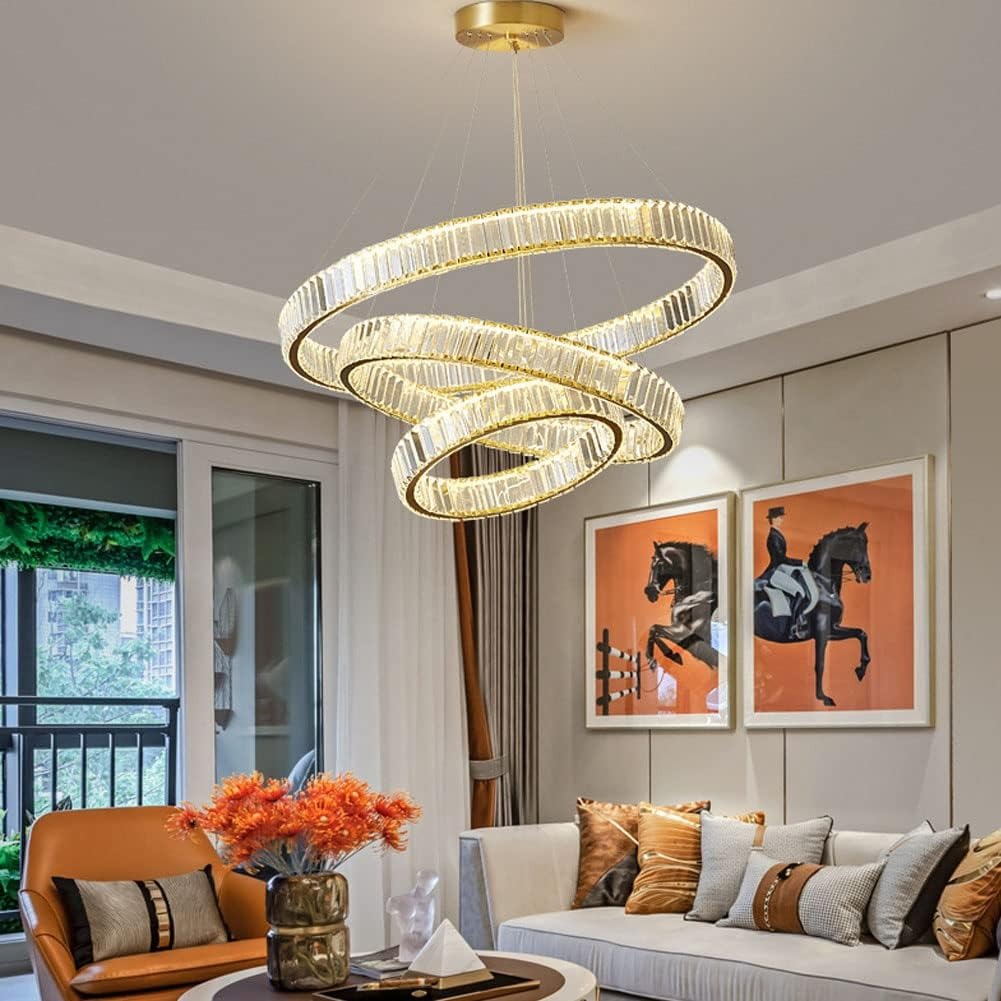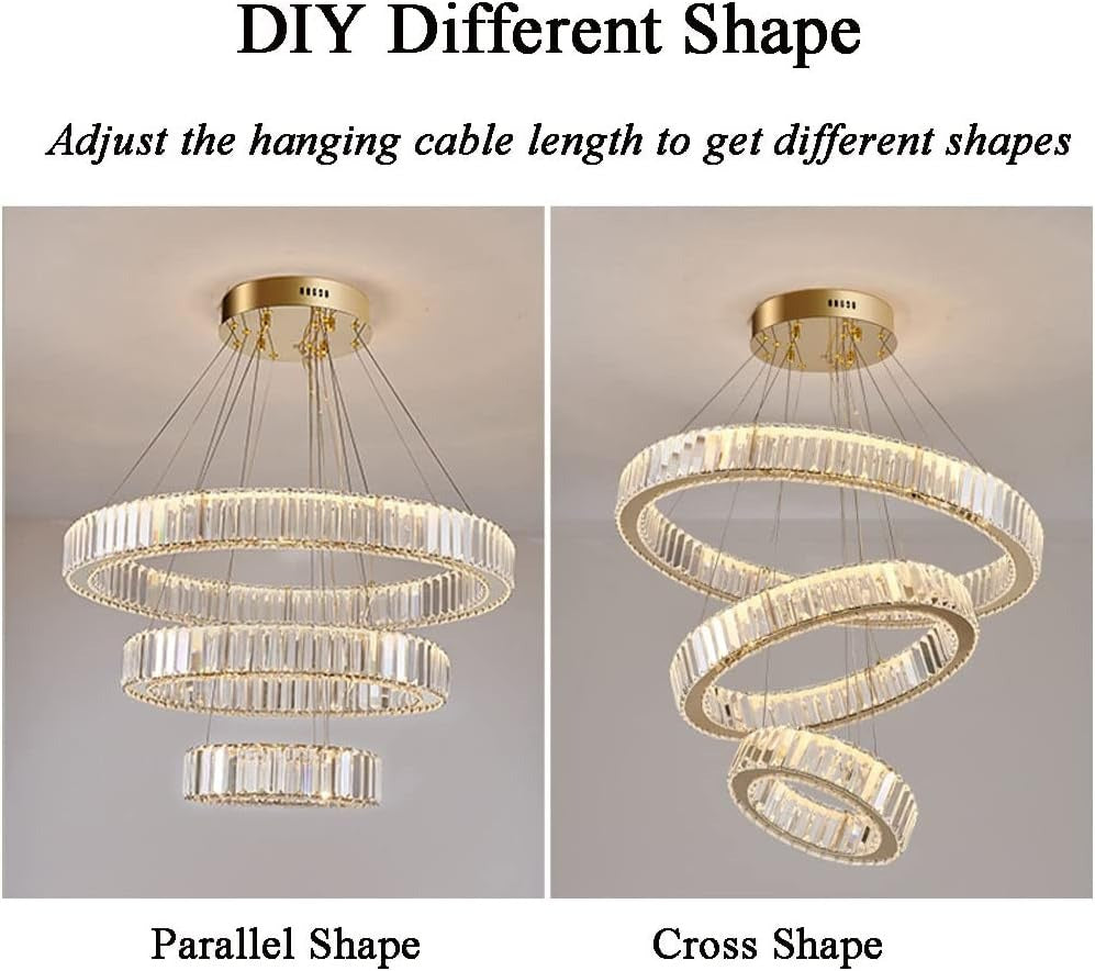 - 【DIY Crystal Chandelier】You can change the suspension position of the 3 rings, DIY the different shape you likes that makes your room special, K9 crystal rings, match with gold frame, make this pendant light more stylish and elegant, perfect for the home decorations, bring your room classic, luxury, transitional.