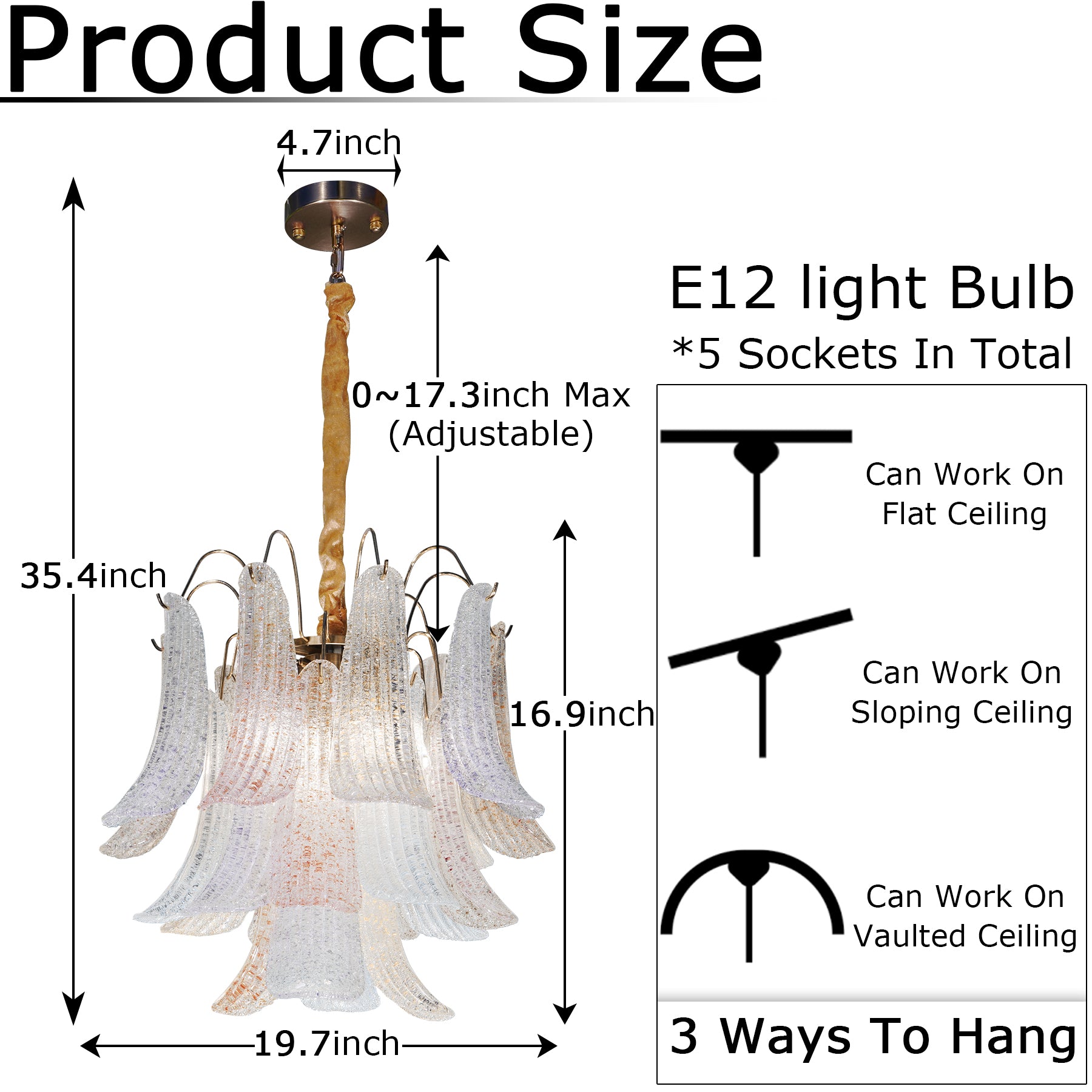 - Flexible Height Adjustment: The black metal suspension chain offers a maximum adjustable length of 26.8 inches (total max height: 47.6 inches), with a compact 5.2-inch brass ceiling canopy for a seamless look. Customize the hanging height to fit low ceilings (bedrooms/entryways) or standard-height ceilings (dining rooms/living rooms), compatible with flat, sloped, and vaulted ceilings.