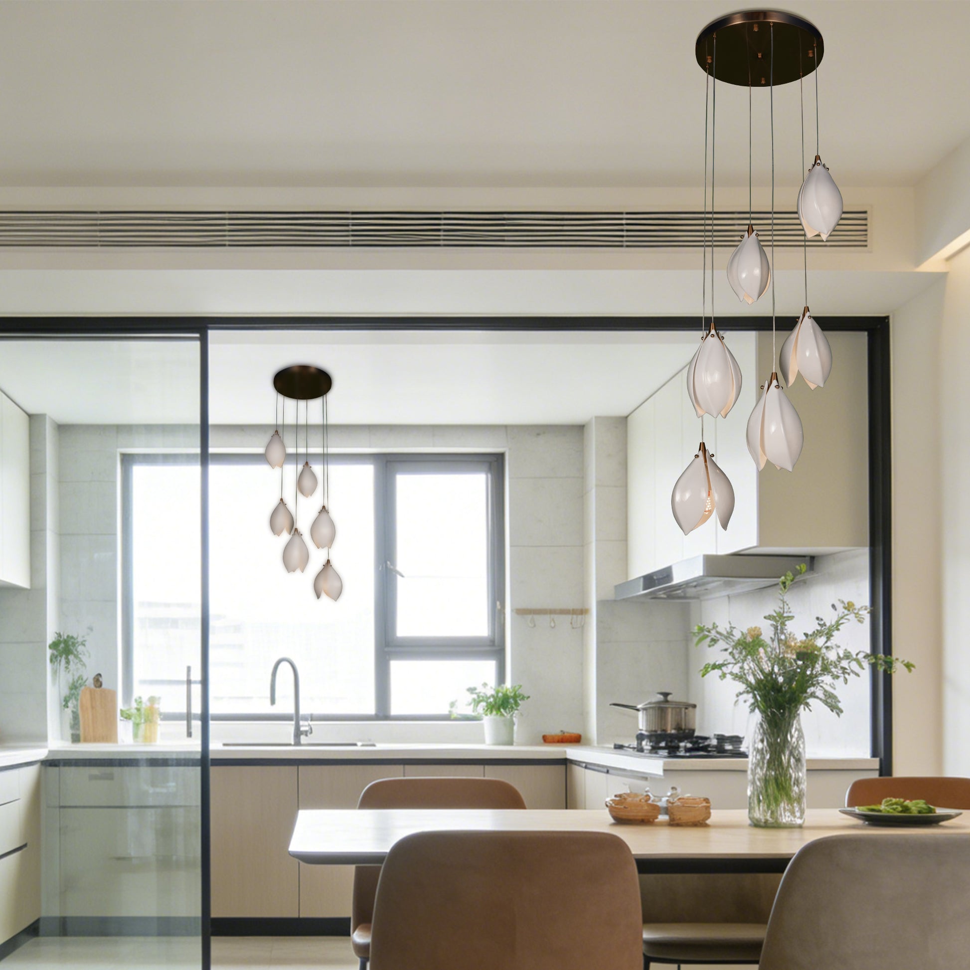 - Versatile Floral-Style Application: The soft white-and-gold design complements modern minimalist, French, cream-style, and nature-inspired interiors. It shines as a statement centerpiece in living rooms, a gentle ambient light in bedrooms, a refined accent over dining tables/kitchen islands, and a whimsical light source in stairwells or studies.