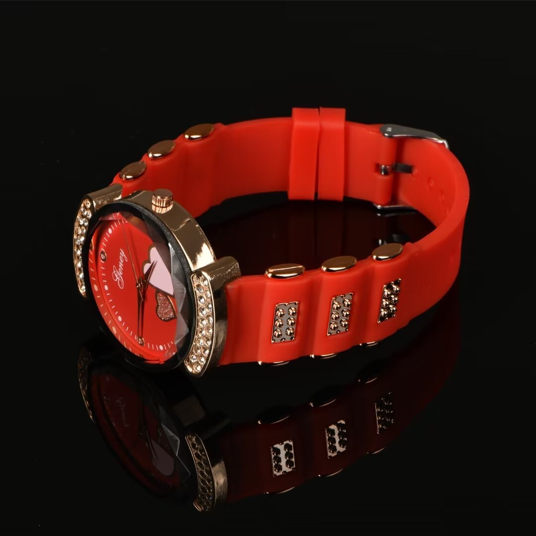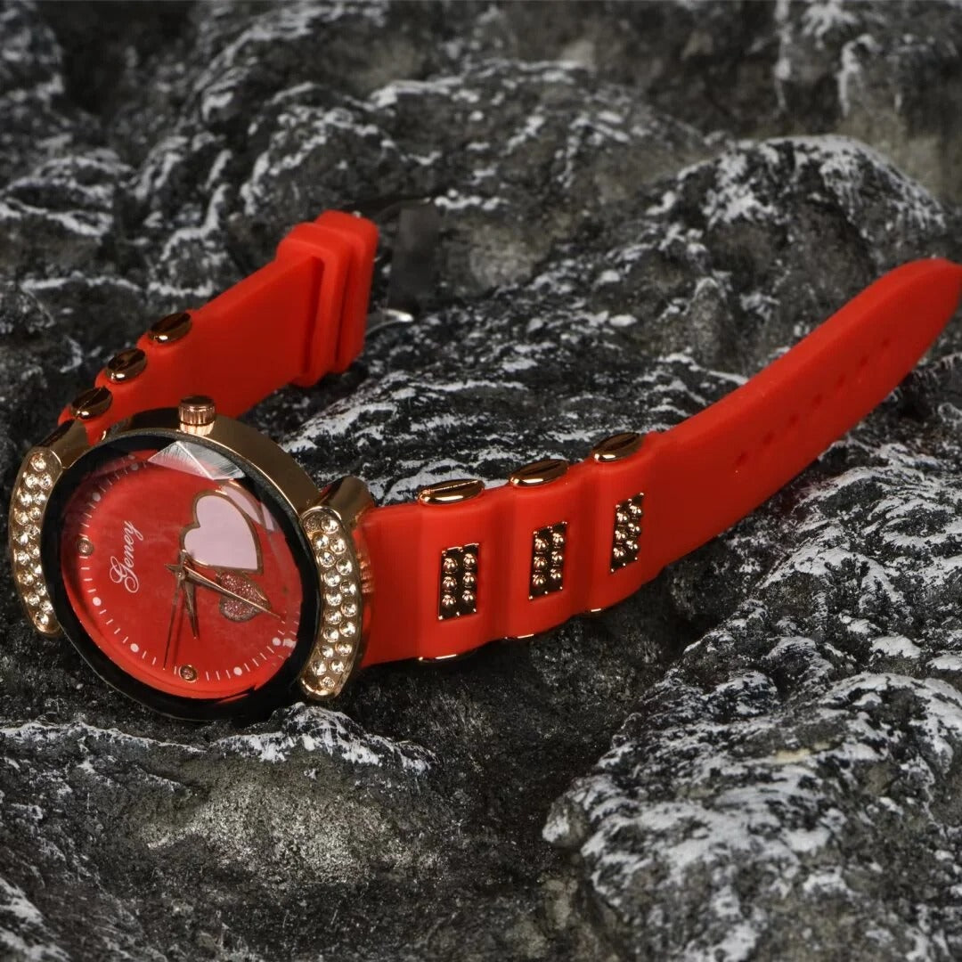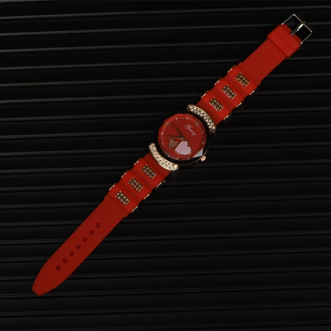 New Fashion Women's Watch,Red High end Silicone Strap with Diamonds, Japanese Quartz Waterproof Women's Watch, the Best Gift for Women
