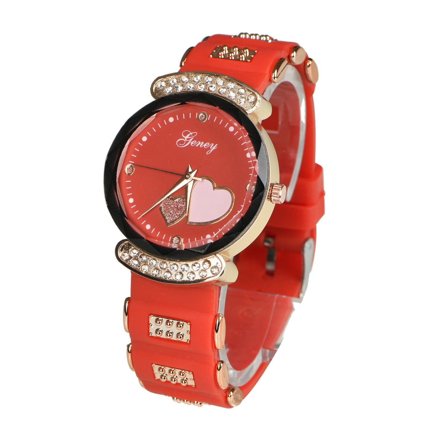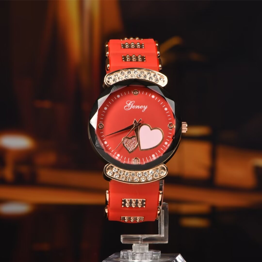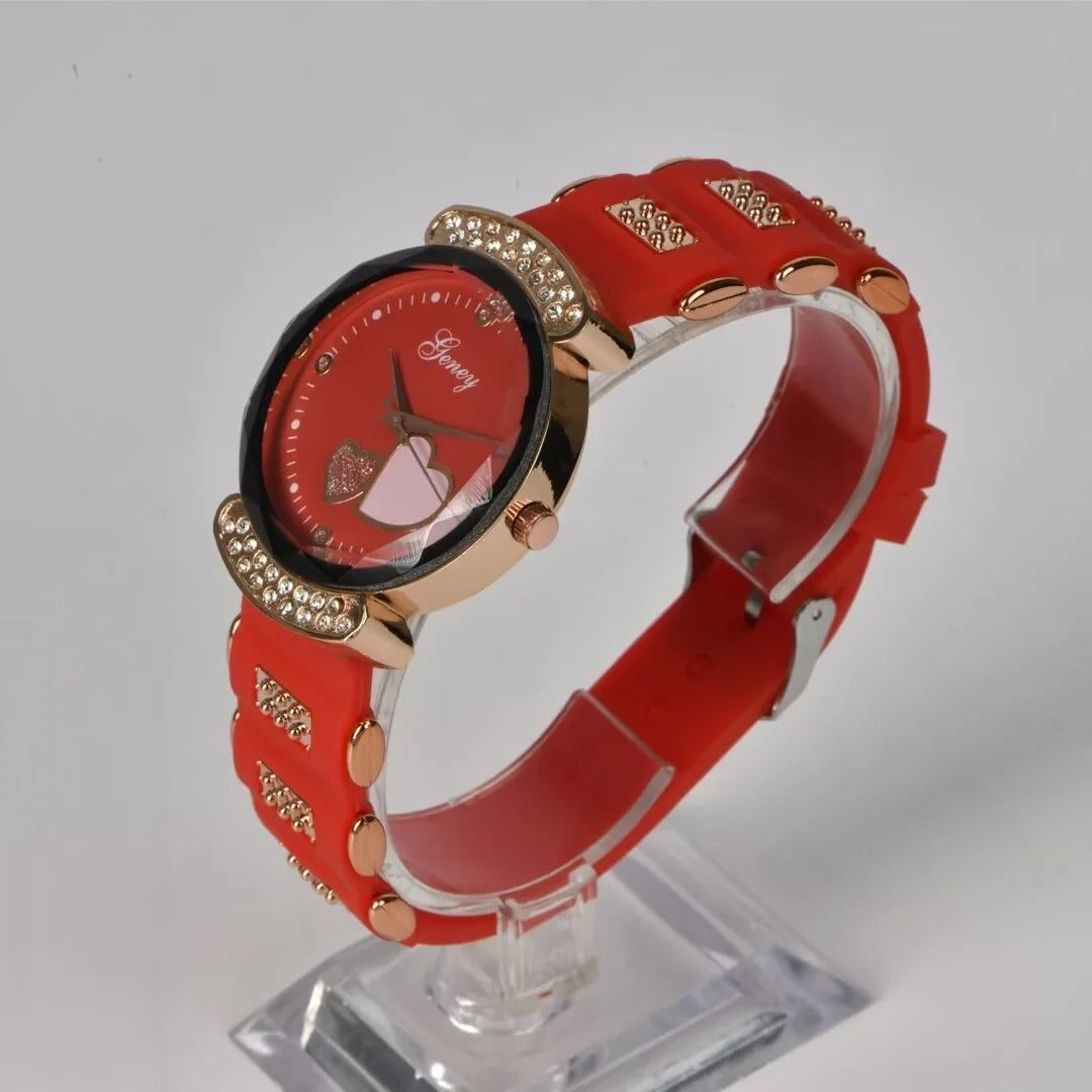 New Fashion Women's Watch,Red High end Silicone Strap with Diamonds, Japanese Quartz Waterproof Women's Watch, the Best Gift for Women