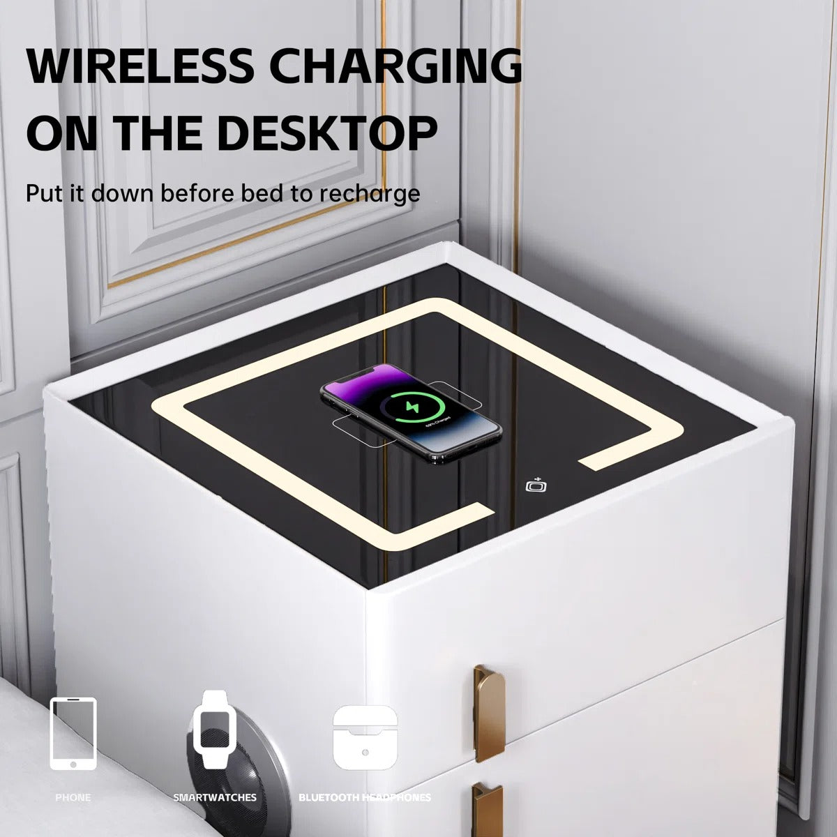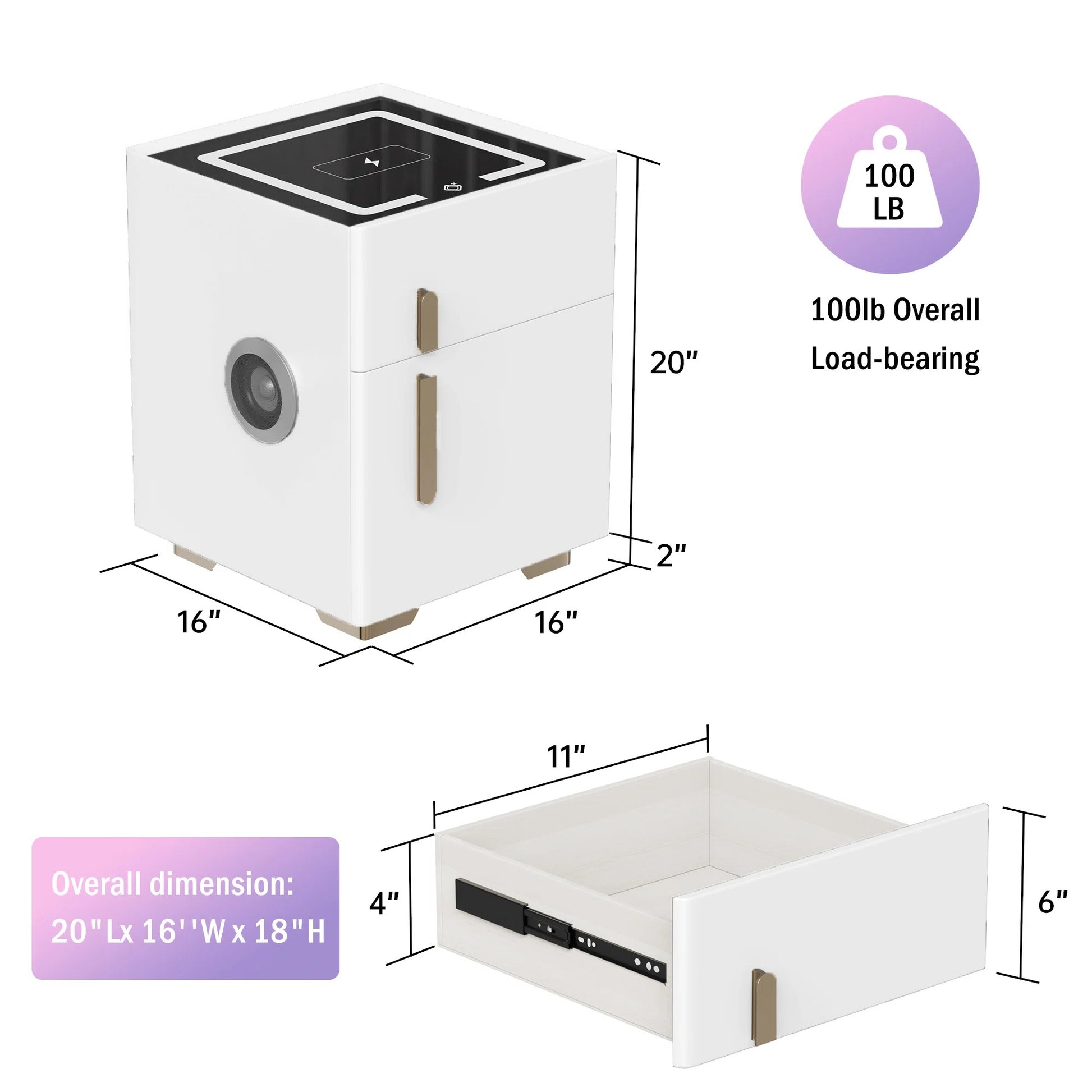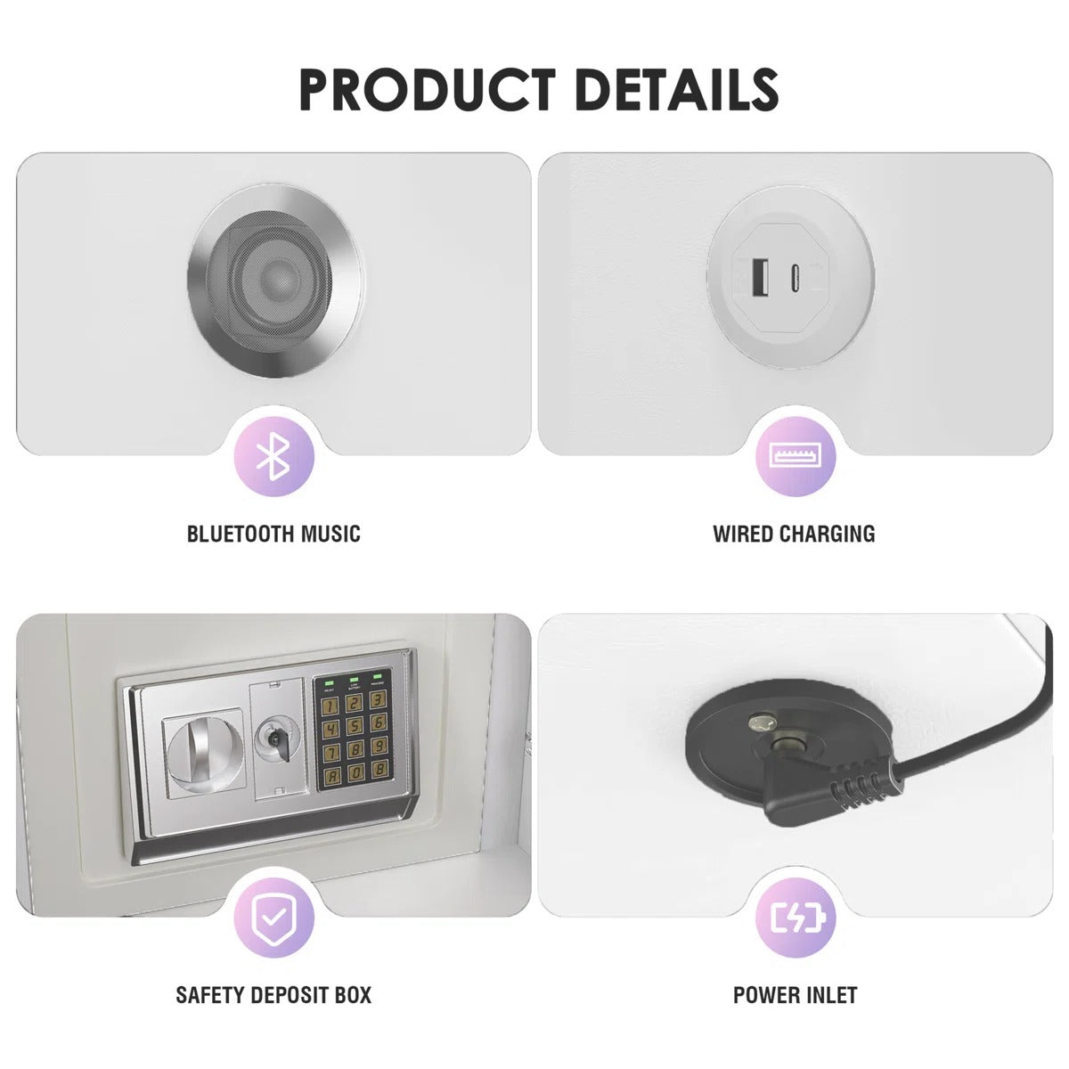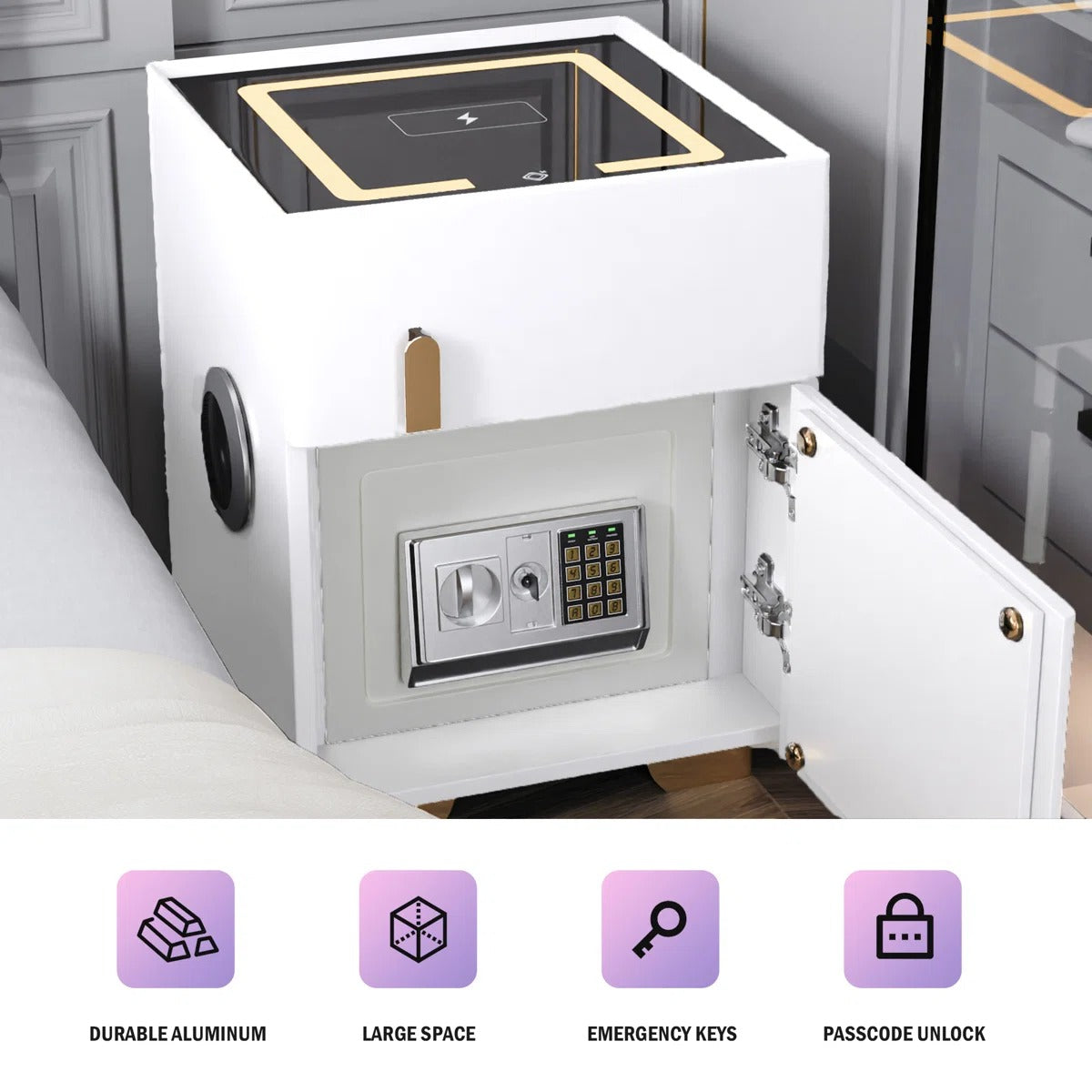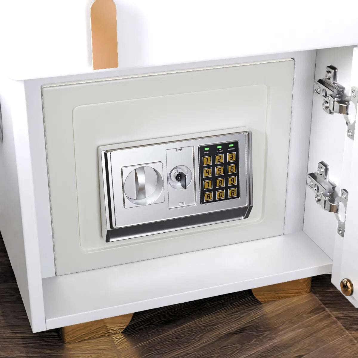- Equipped with a built-in safe (password and key), this nightstand provides secure storage for your valuables.