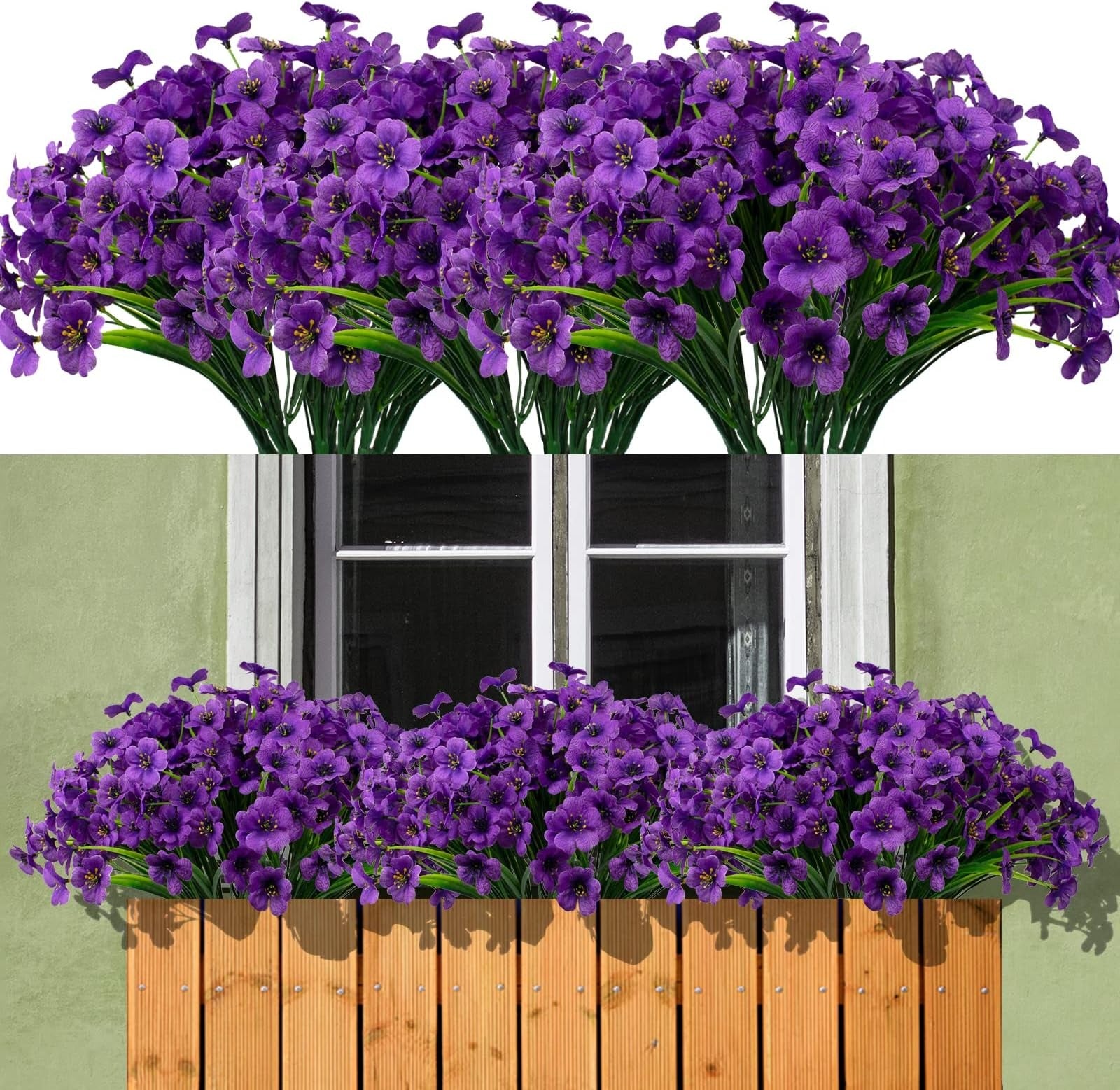 Outdoor Artificial Flowers 21 UV Resistant Bundles Fake Flower Plastic Plants Faux Silk Flowers Porch Hanging Garden Porch Window Box Decorating
