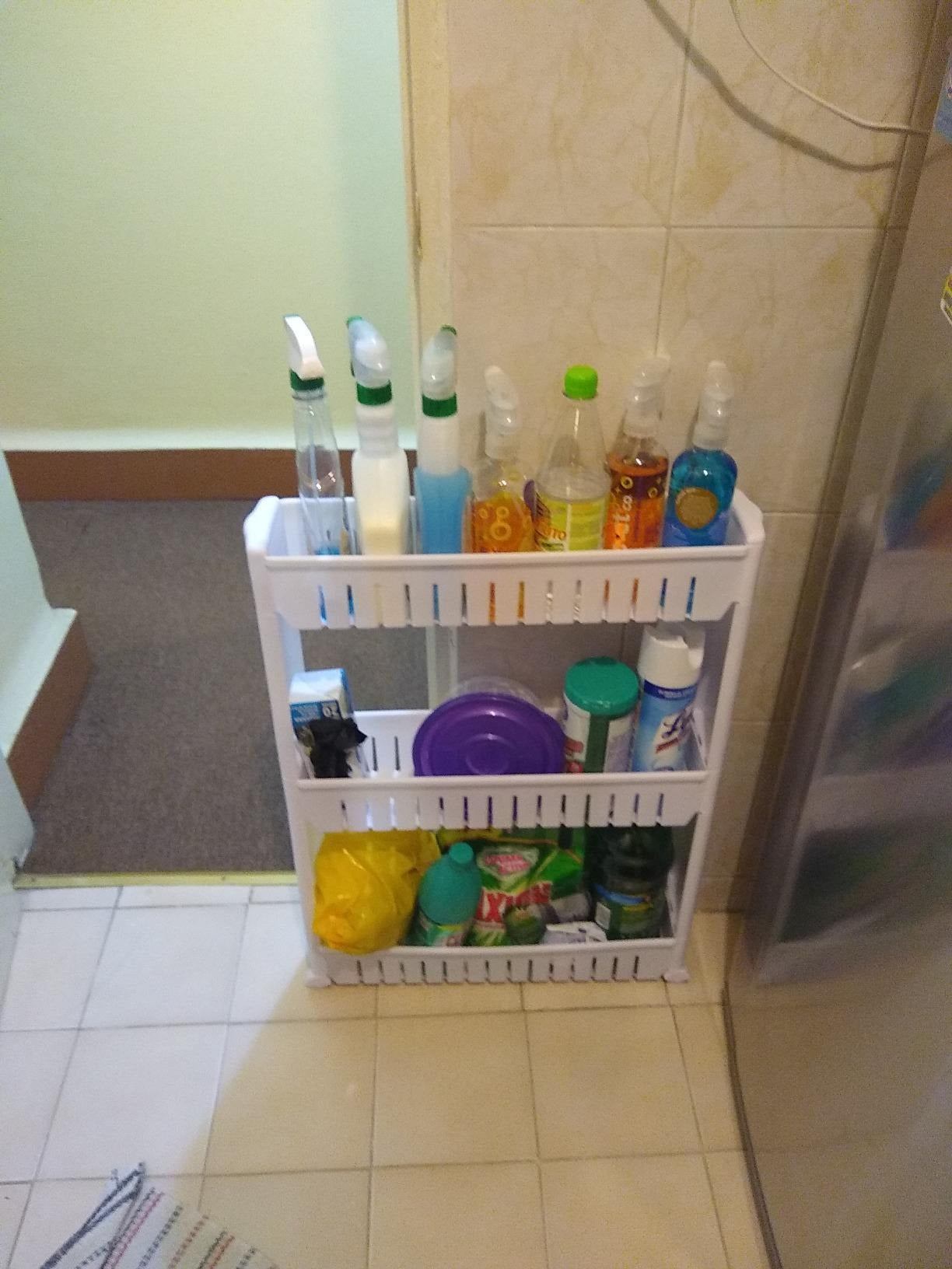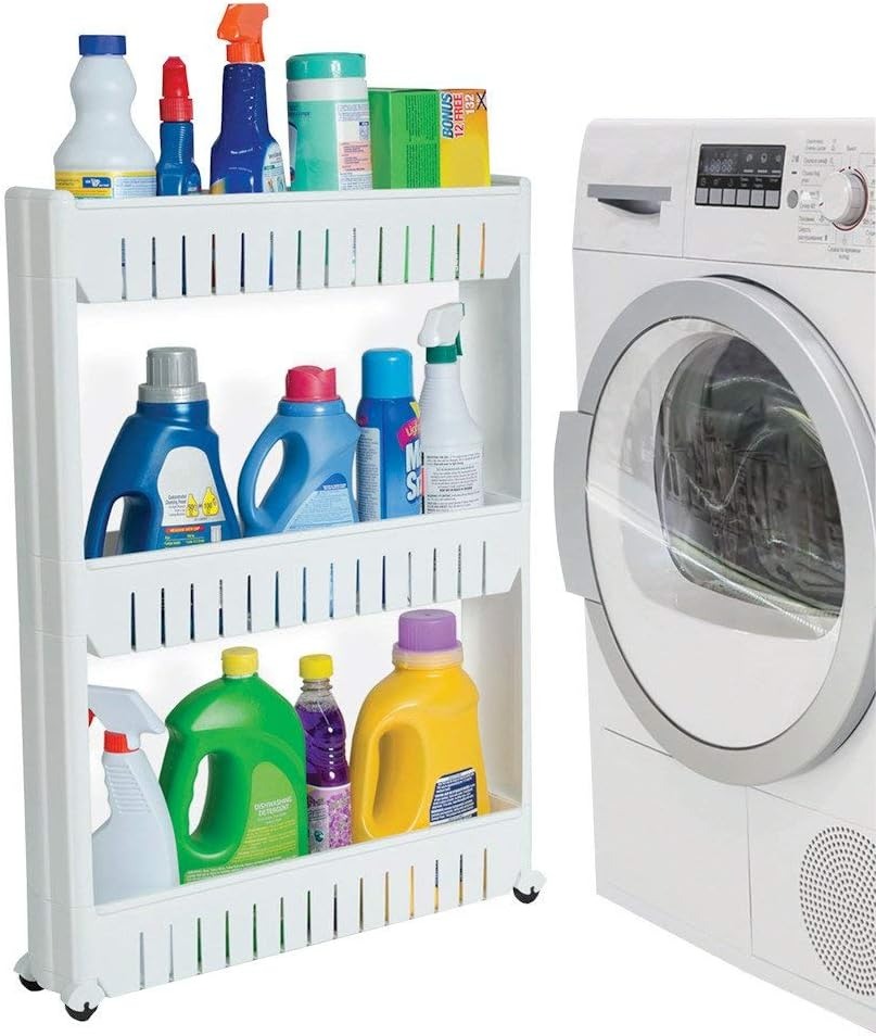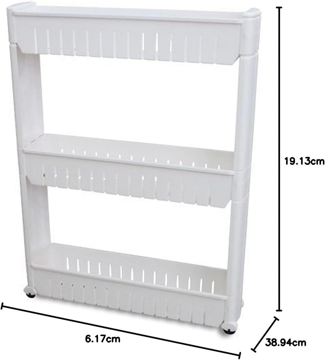 Slide Out Storage Tower White, 3-Tier, 4.4"D x 9.5"W x 21.8"H