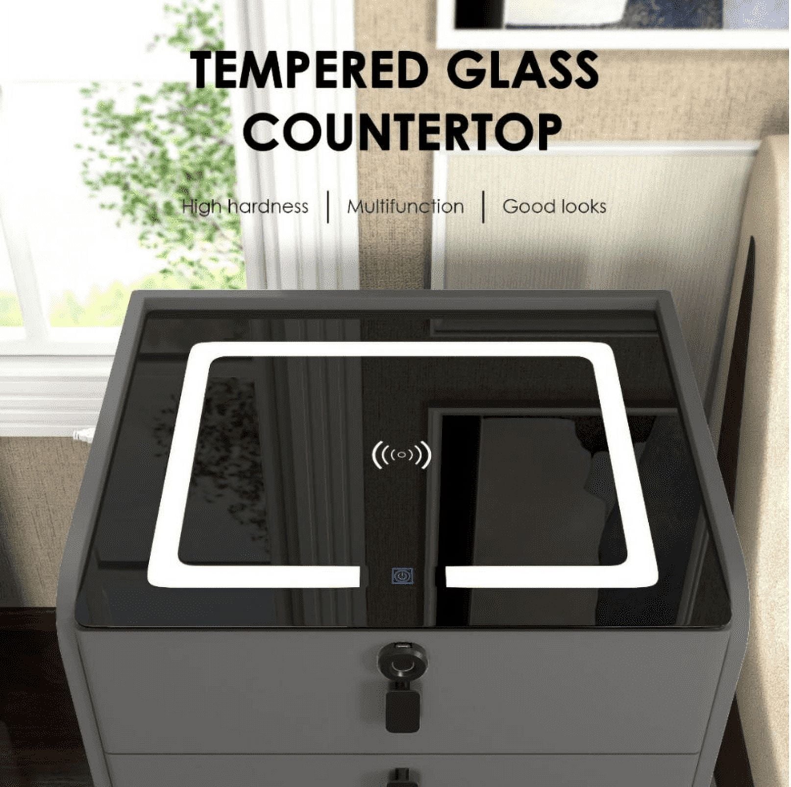 - Durable Design: Tempered glass countertop and solid wood drawers for lasting quality.