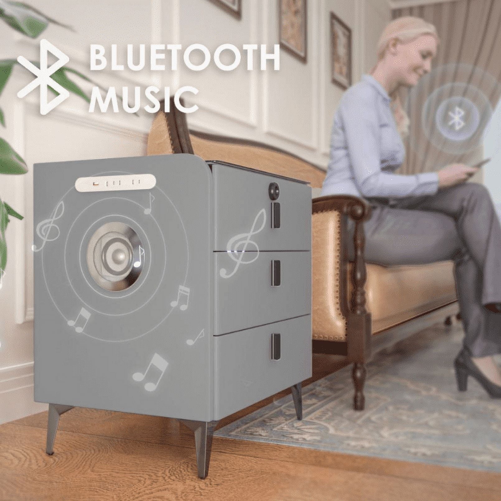 Smart Three-Drawer Bedside Cabinet - Dark Grey with Bluetooth Speaker & Wireless Charging