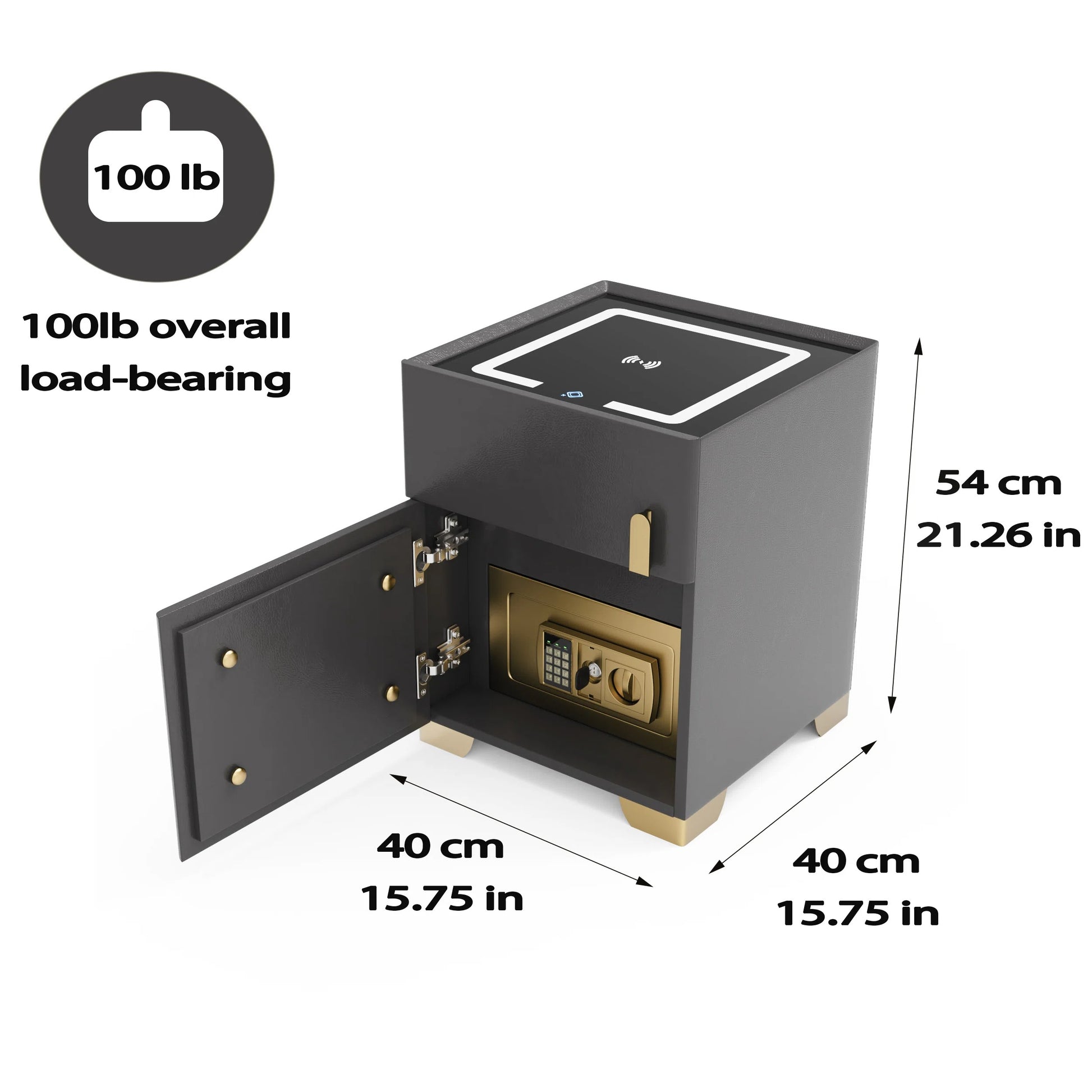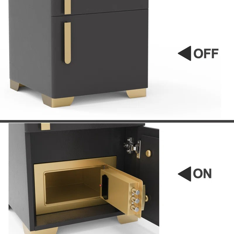 - Equipped with a built-in safe (password and key), this nightstand provides secure storage for your valuables.