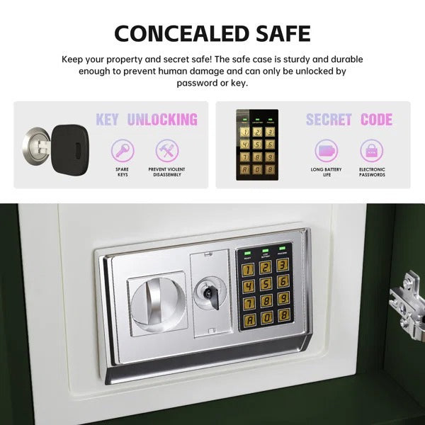 - Equipped with a built-in safe (password and key), this nightstand provides secure storage for your valuables.