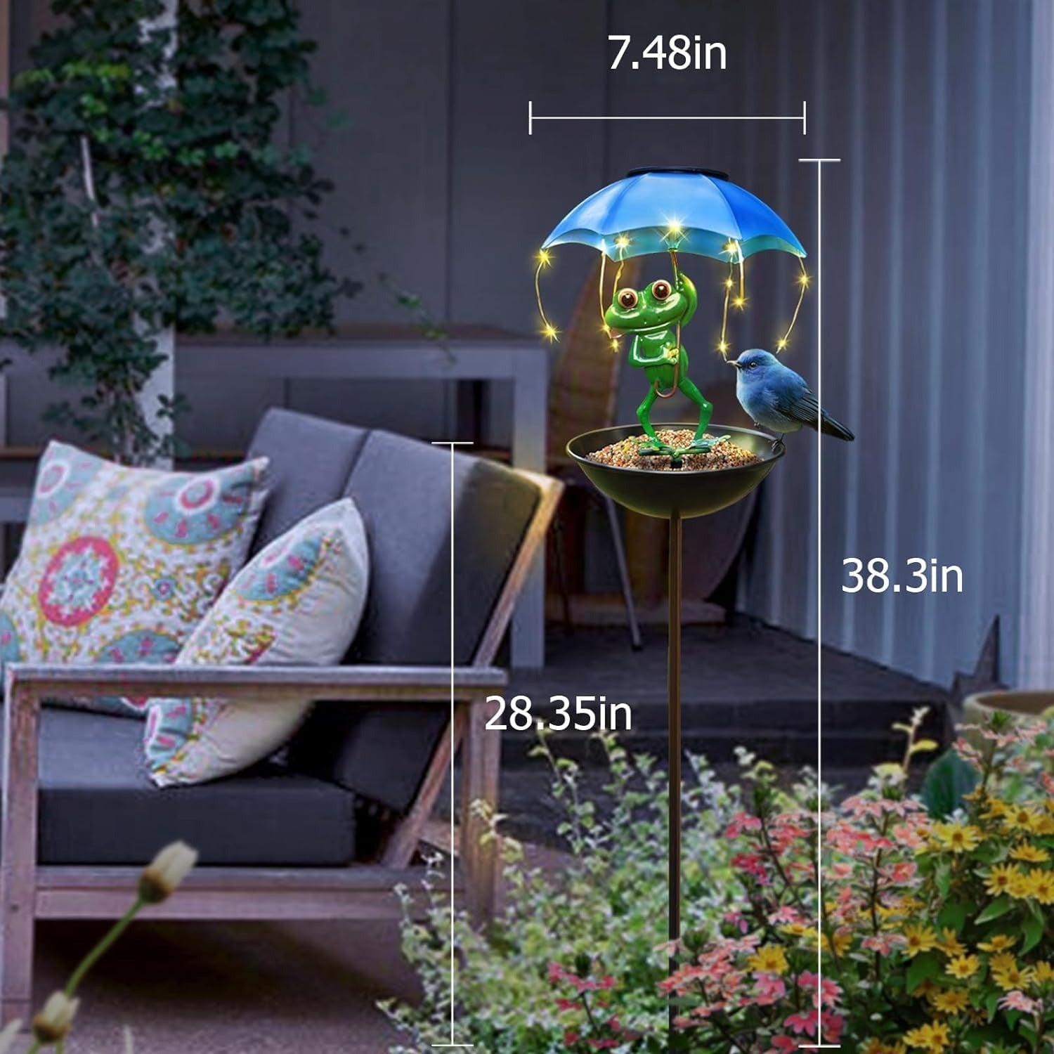 Solar Bird Feeder Frog Garden Decor Hummingbird Feeder Decorative Path Lights Gardening Gifts for Women, Yard Art Ornament Bird Feeder