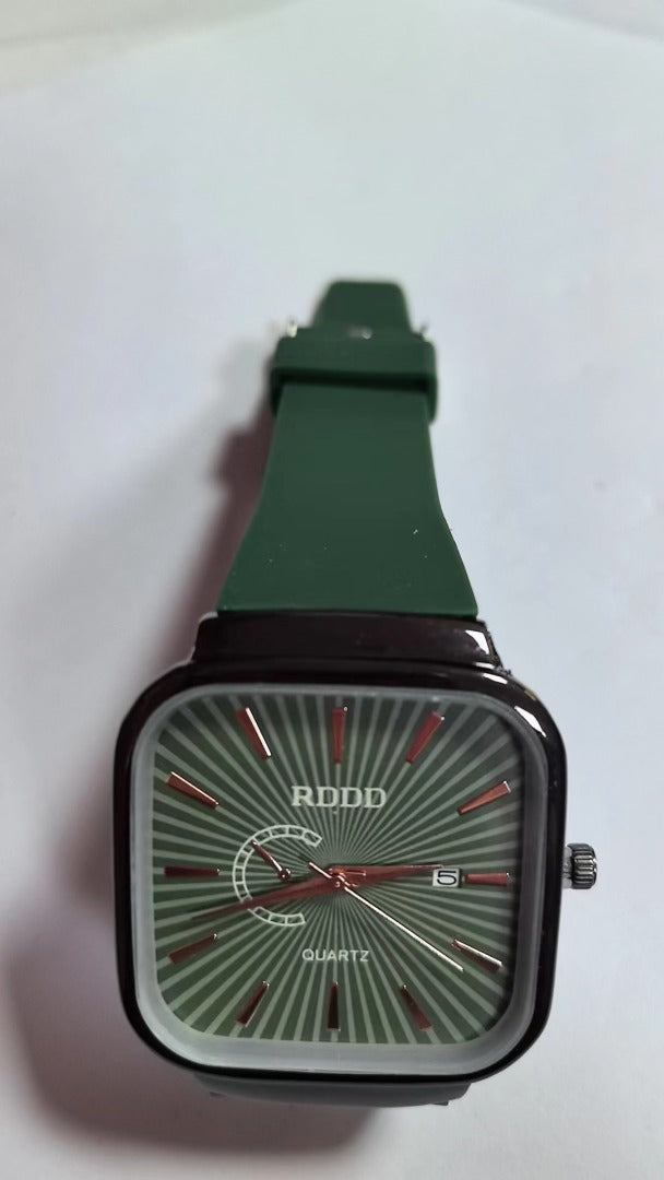 Stylish Unisex Square Quartz Watch with Silicone Band | Minimalist Deep Green Wristwatch for Men and Women
