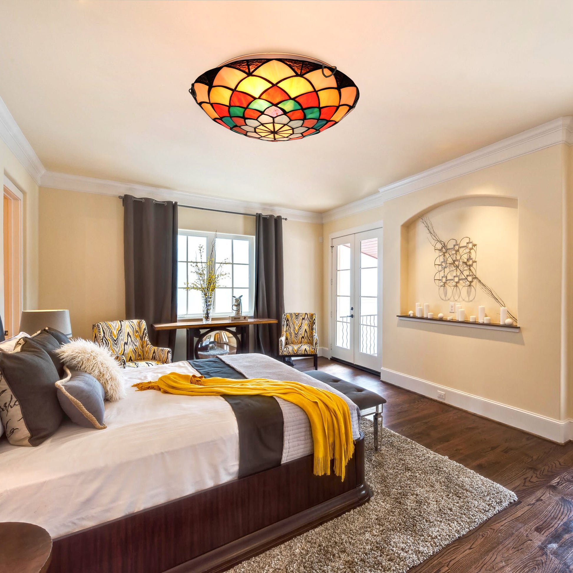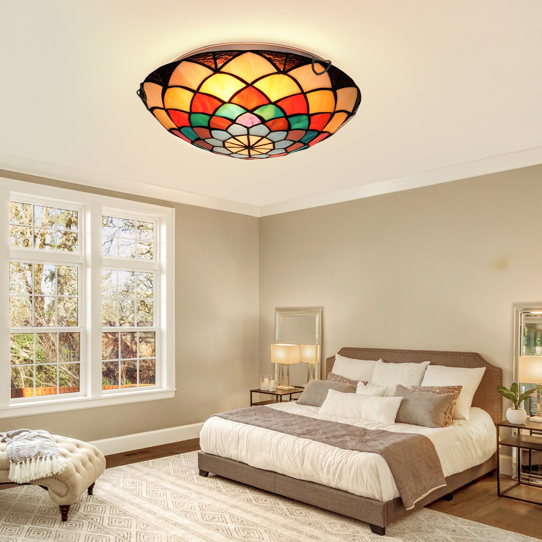 The European Stained Glass Baroque Style Tiffany Flush Mount Ceiling Light is a stunning fixture that blends intricate Baroque design with the classic charm of Tiffany-style stained glass.