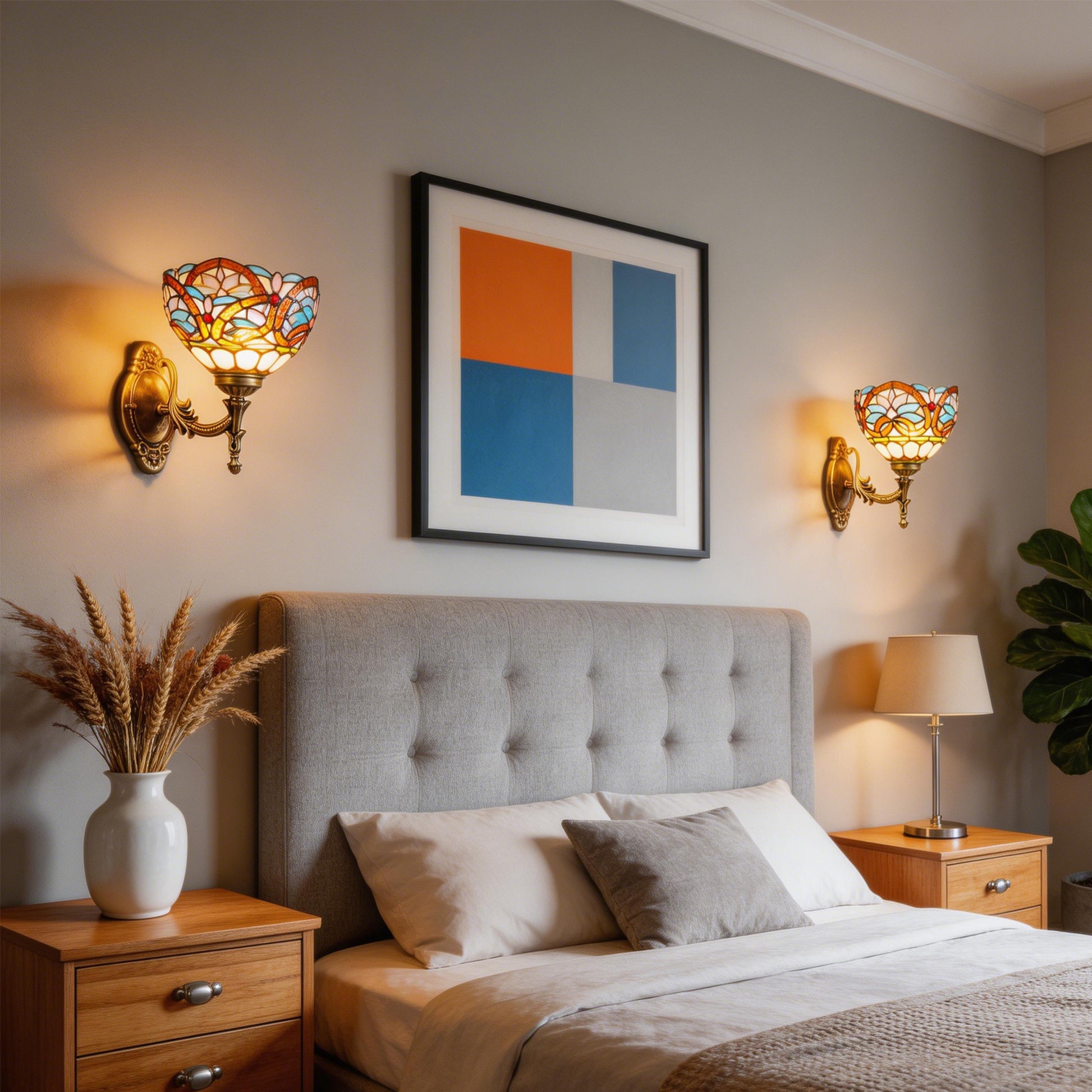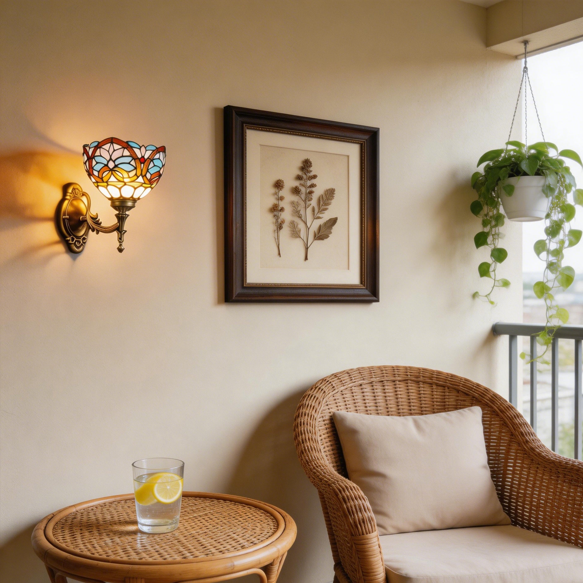 Durable & Easy to Maintain: The stained glass shade is sturdy, fade-resistant, and easy to clean, while the bronze metal frame resists tarnish and wear, ensuring long-lasting beauty. The fixture’s compact size fits seamlessly into both small and large spaces.