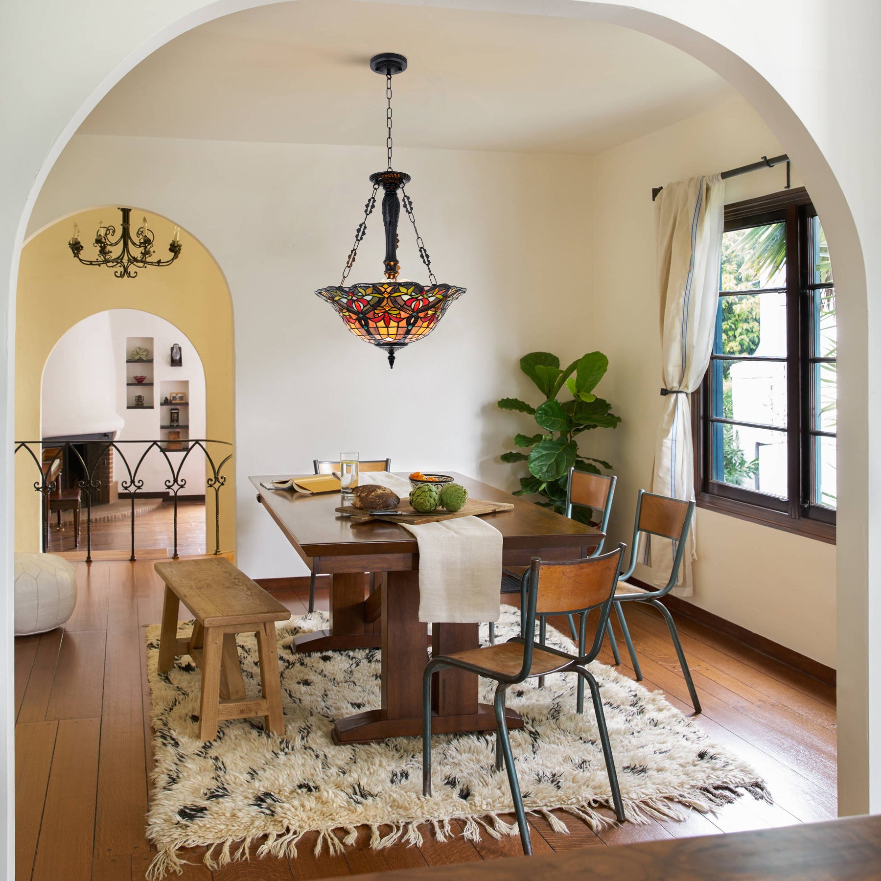 The European Style Colored Tiffany Victorian Glass Entryway Chandelier is an exquisite lighting fixture that combines vibrant colored glass with a Tiffany-style Victorian design and an elegant European touch.