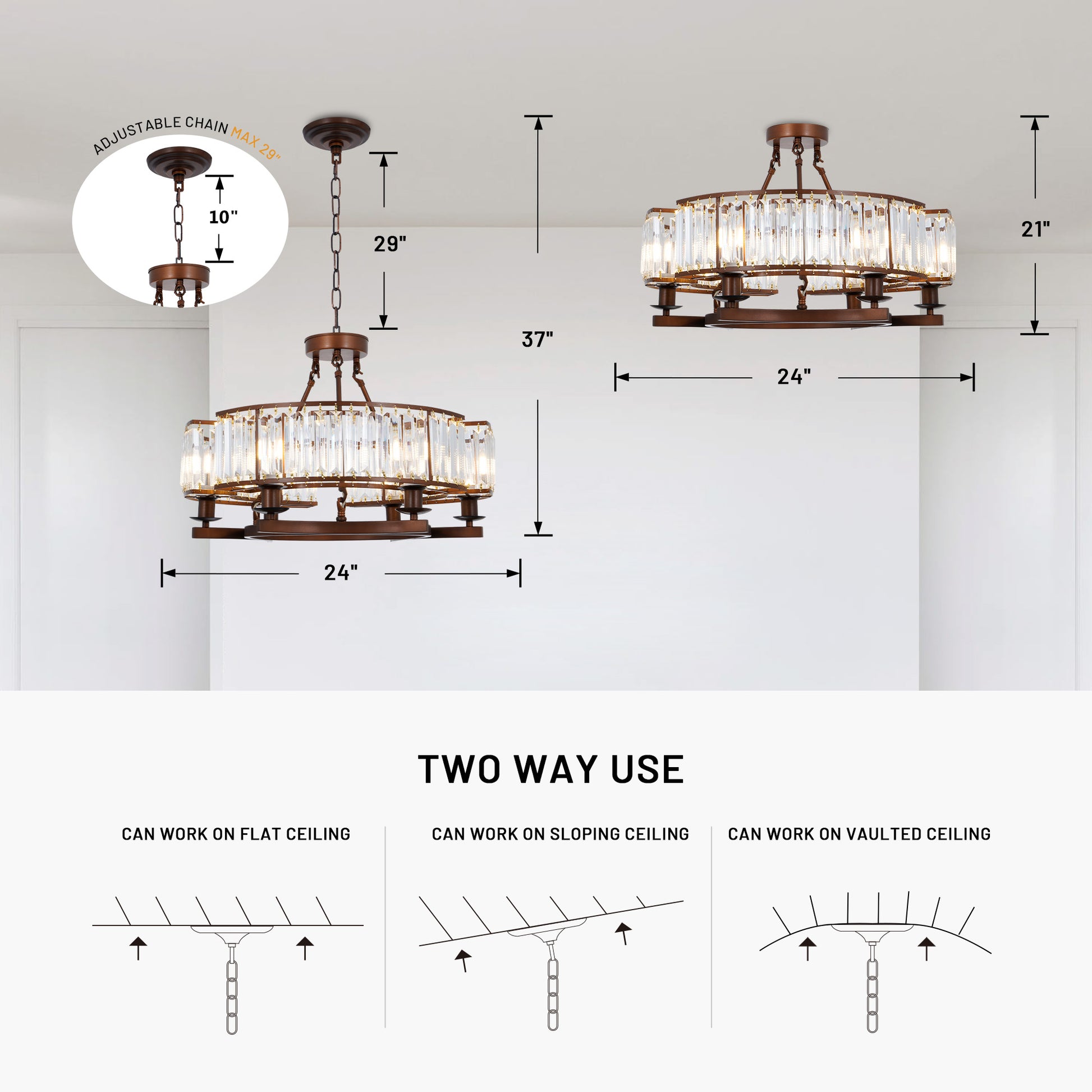 Vintage Brown Adjustable Flush Mount Crystal Chandelier DS-SL06