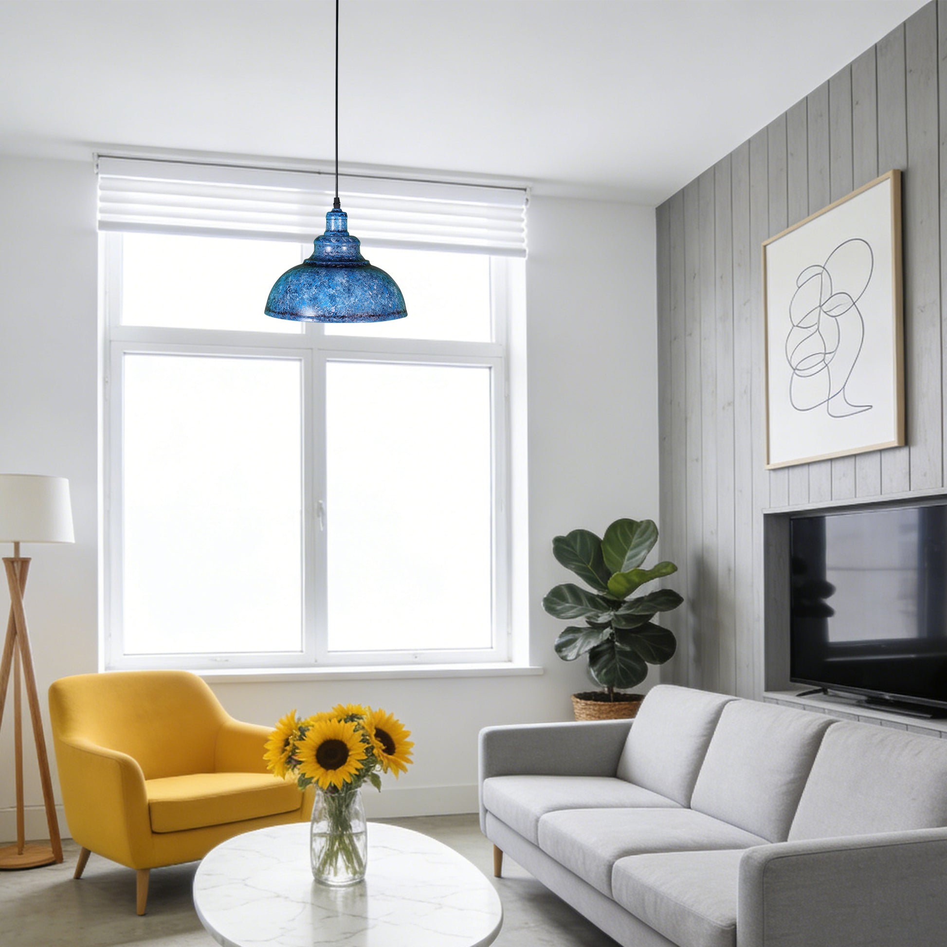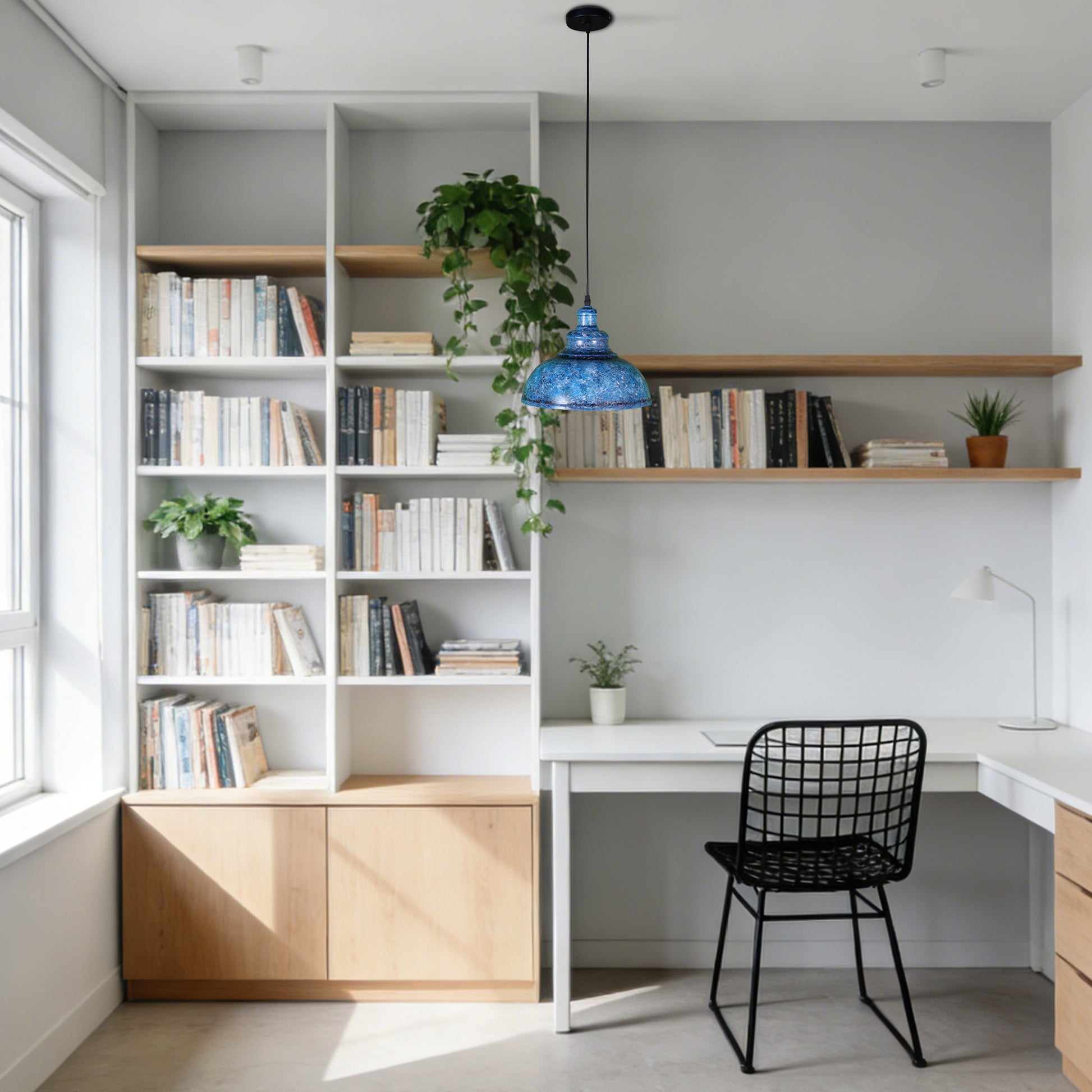 Infuse your space with rustic industrial charm and bold color character using our Vintage Industrial Blue Wrought Iron Pendant Light. Crafted with a hand-finished blue distressed iron shade and a matte black interior, this fixture blends retro factory aesthetics with modern functionality, serving as a striking focal point while casting warm, focused illumination—ideal for industrial, farmhouse, or eclectic interiors.