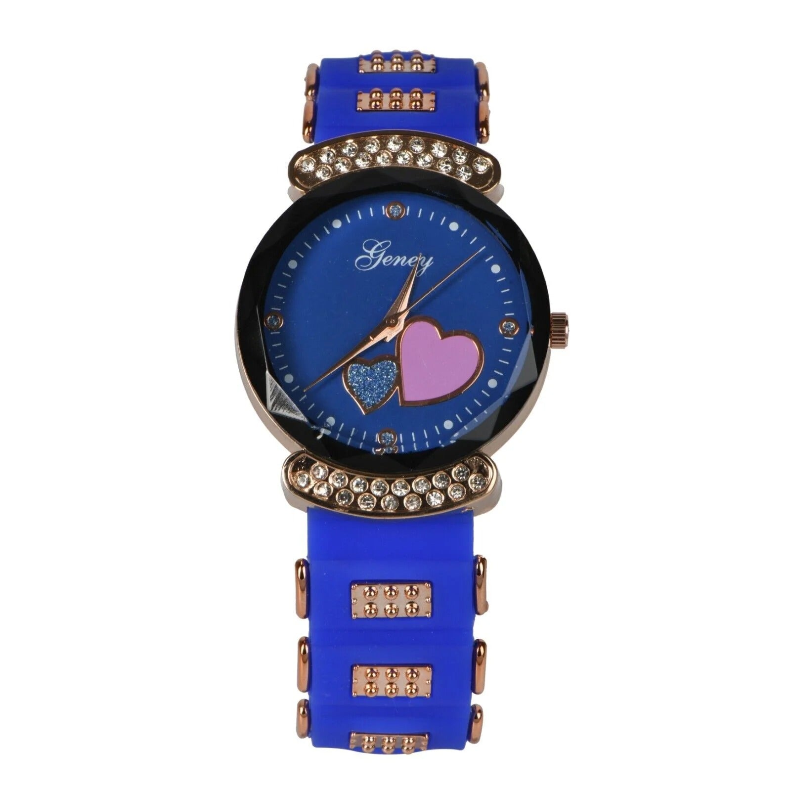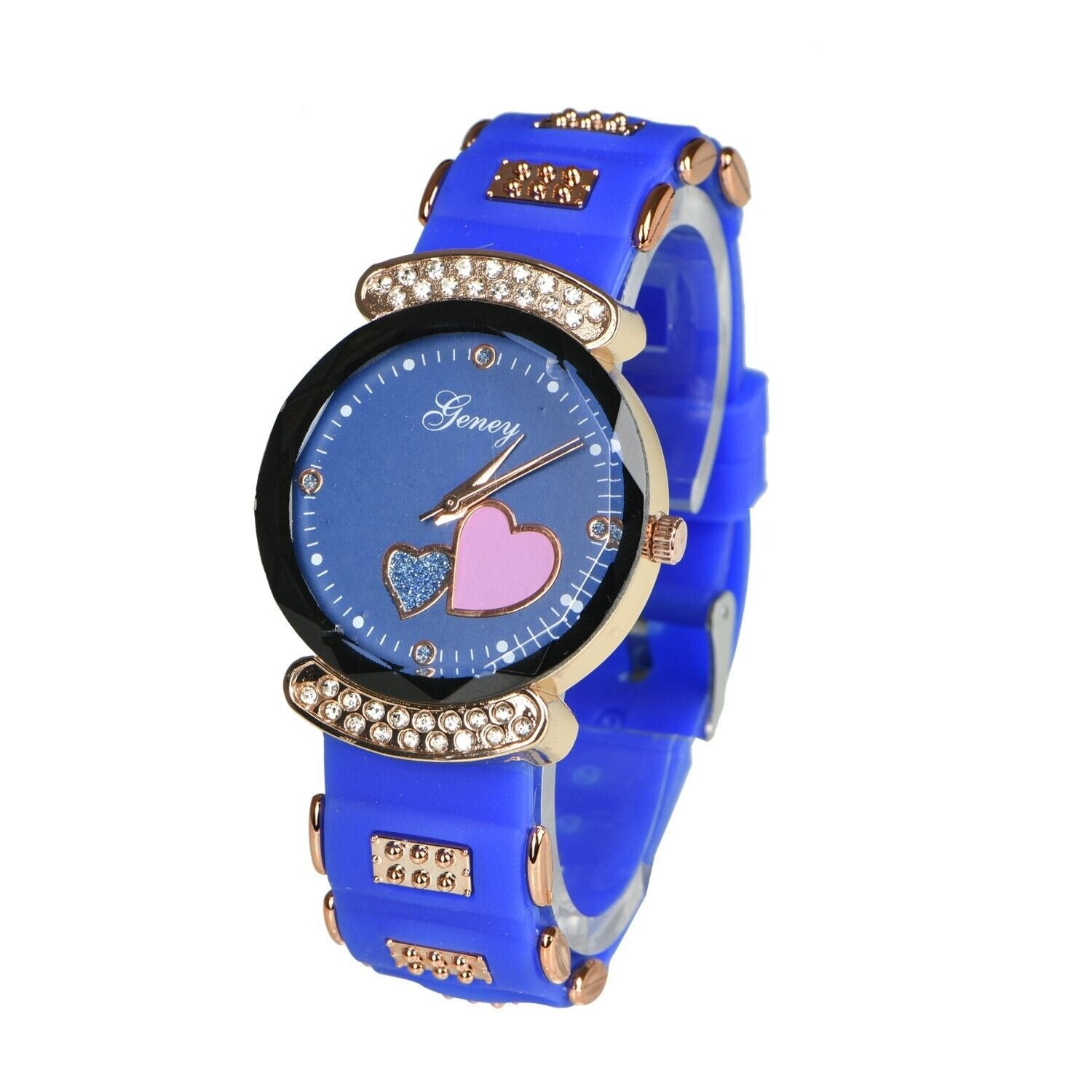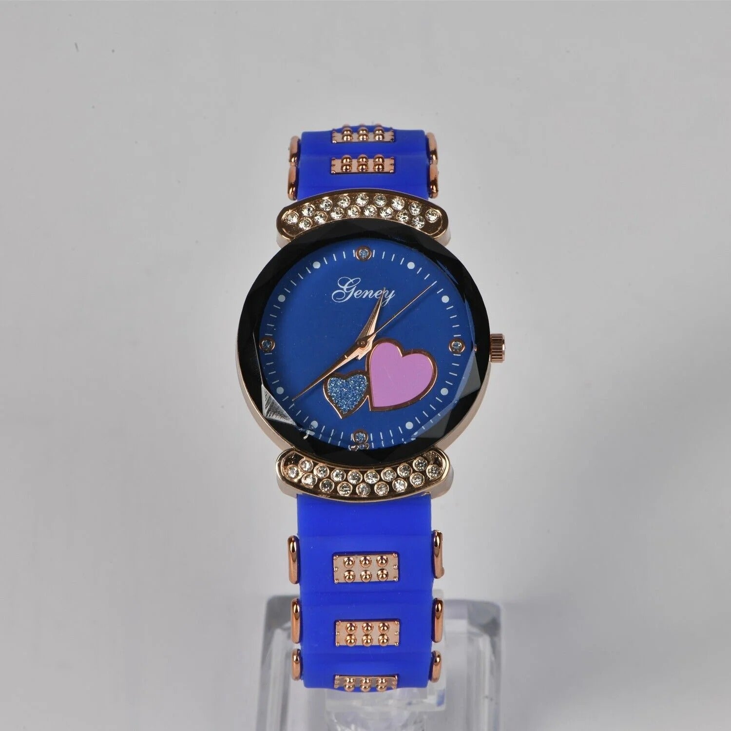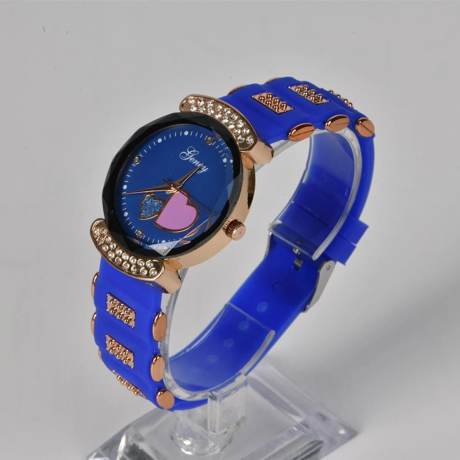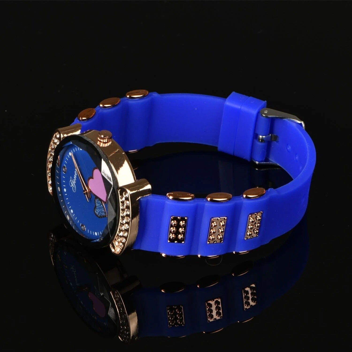 Women Silicone Band Analog Quartz Casual Watches Diamond Jelly Blue Color Gift