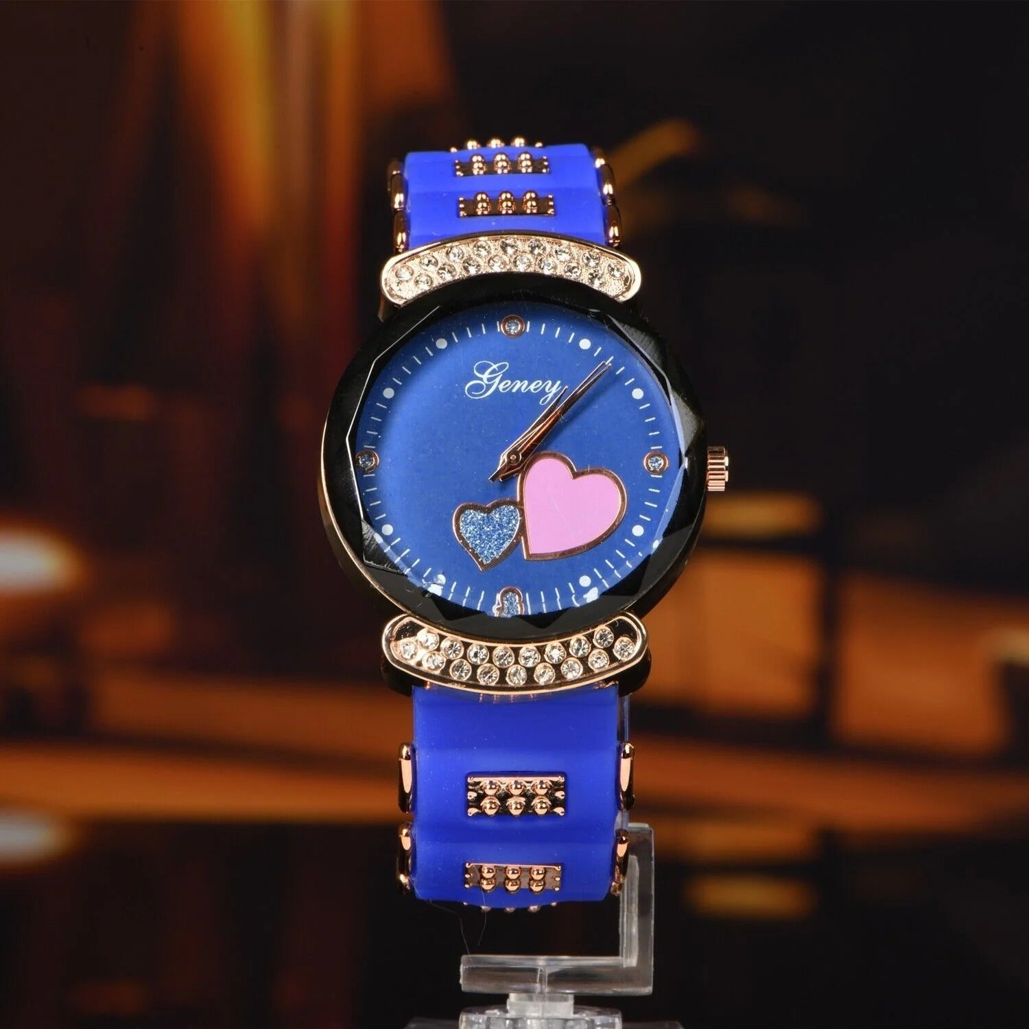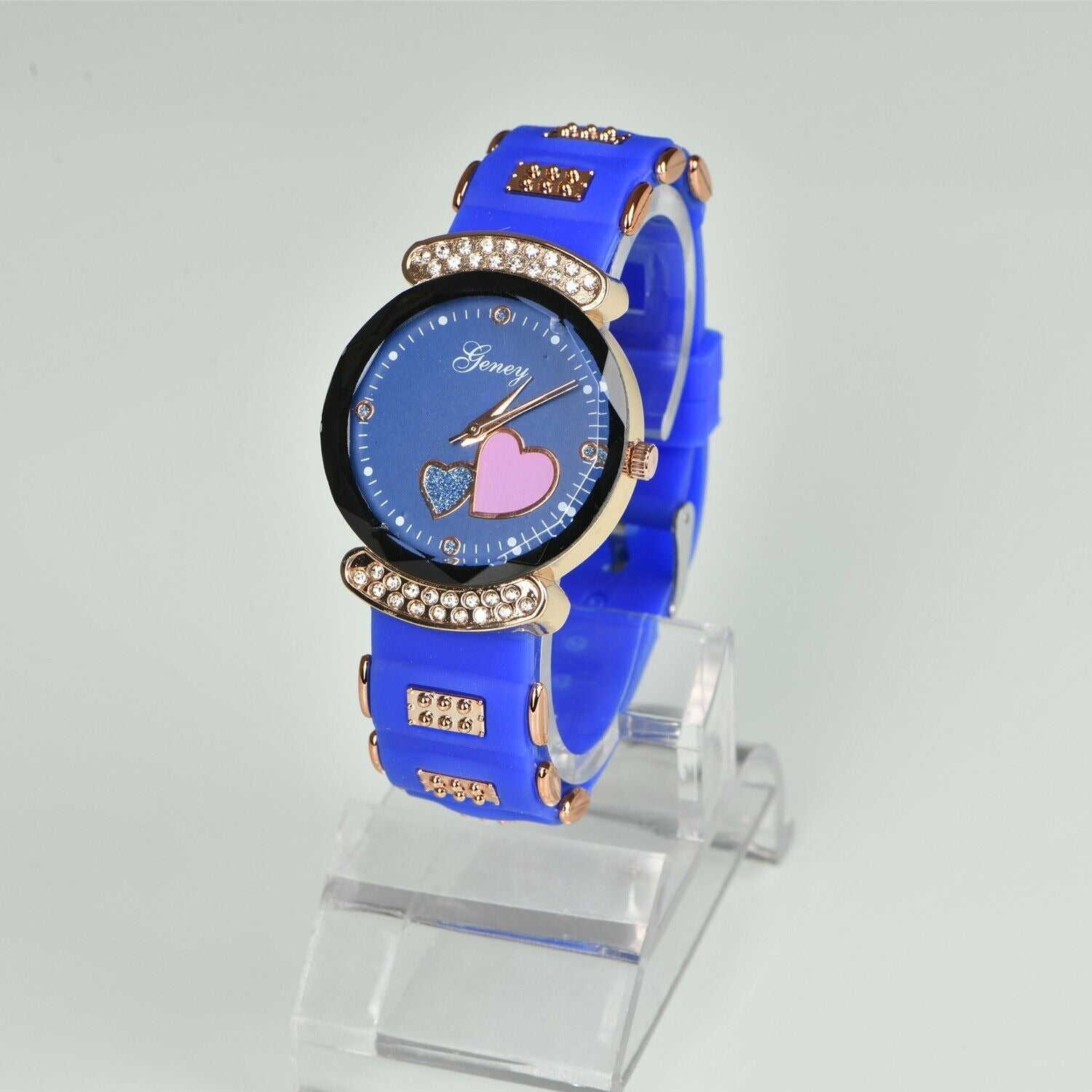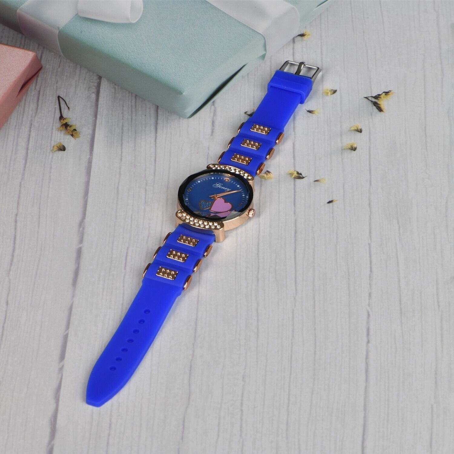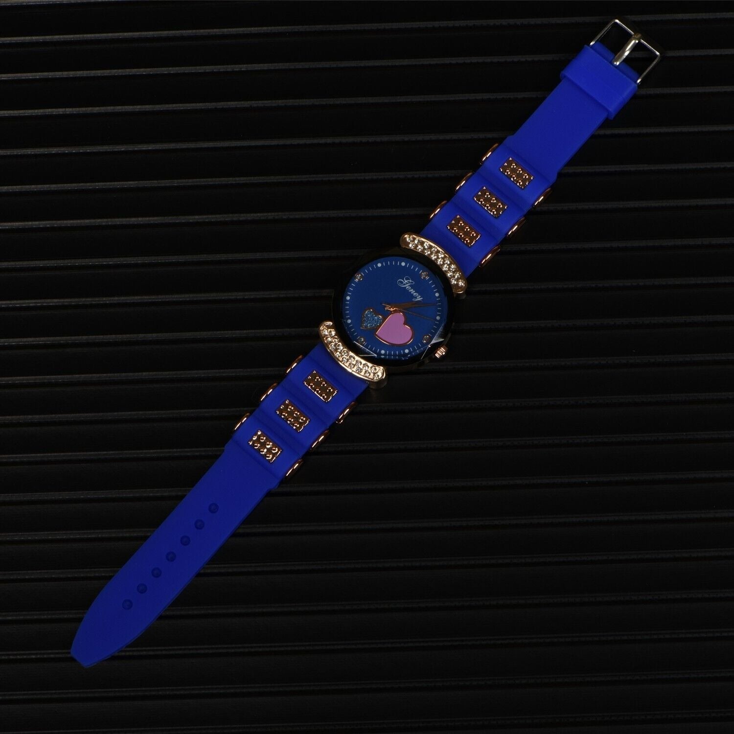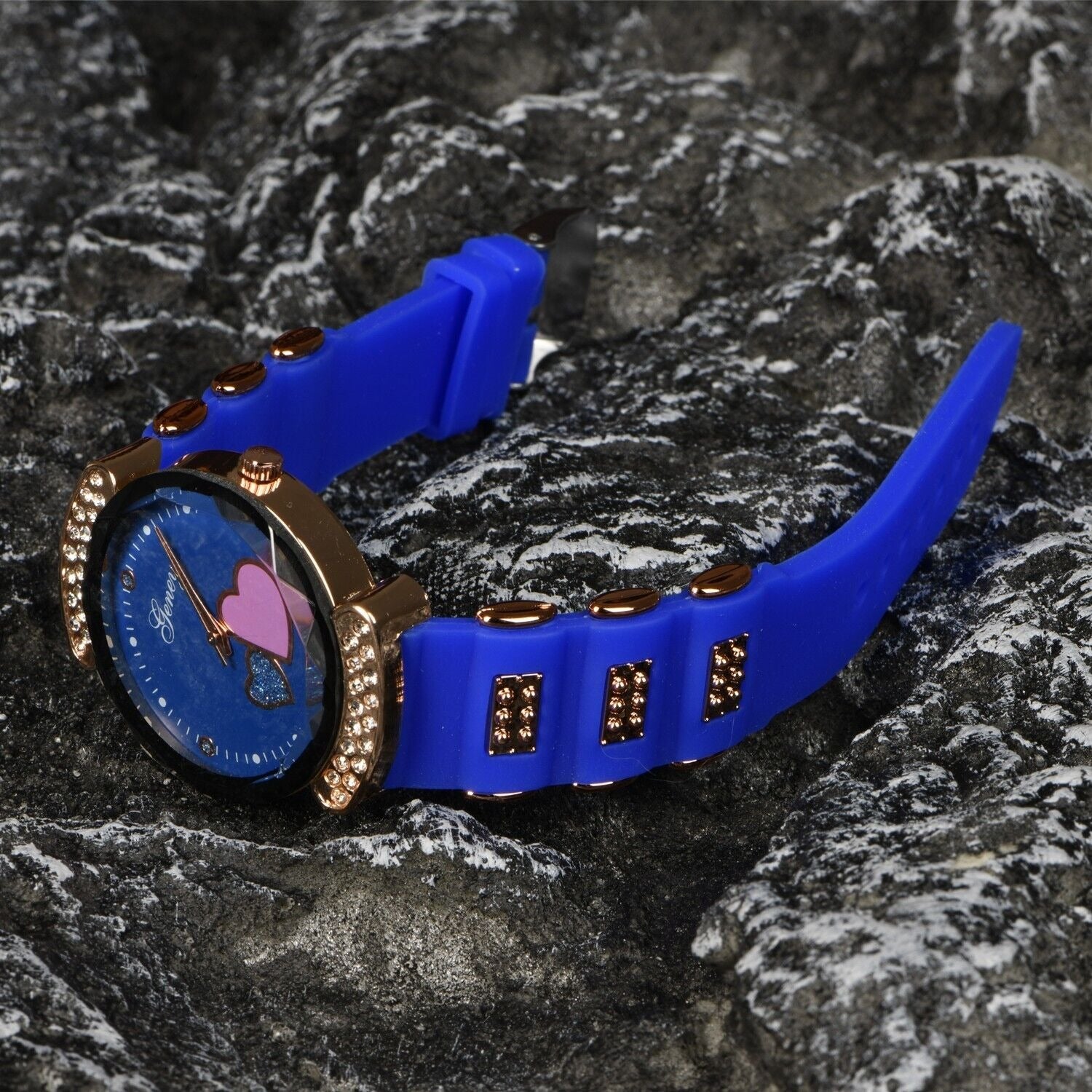Women Silicone Band Analog Quartz Casual Watches Diamond Jelly Blue Color Gift
